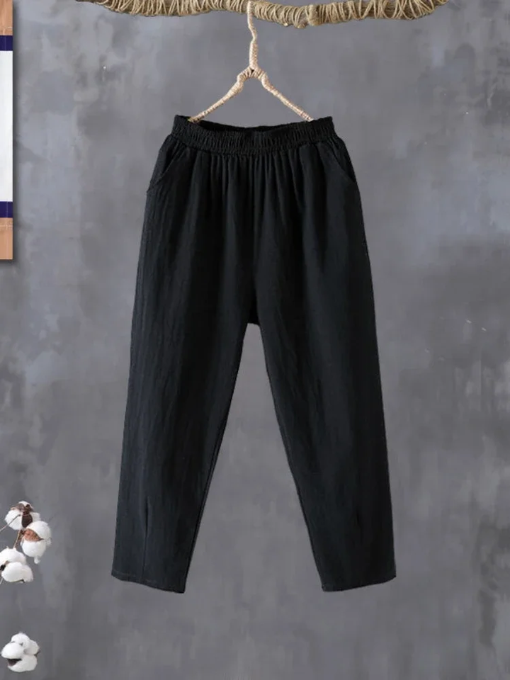 กางเกงฮาเร็มผู้หญิงผ้าลินินผ้าฝ้ายแฟชั่นฤดูร้อนกางเกงฮาเร็มยาวถึงข้อเท้าเอวยางยืดกางเกงลายสัตว์ลำลอง