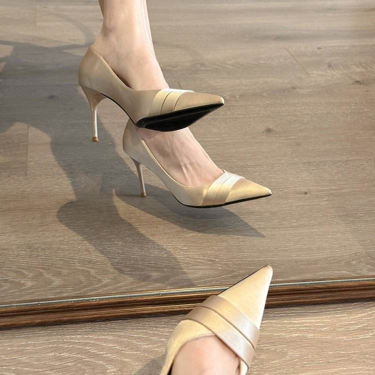 รองเท้าผู้หญิงแบบสวมใส่ในฤดูร้อน ป้องกันการลื่น ดีไซน์เชือกผูก ตาข่าย แบบส้นสูง/ส้นเตี้ย หัวแหลม แบบเซ็กซี่ สำหรับงานเลี้ยง แฟชั่น