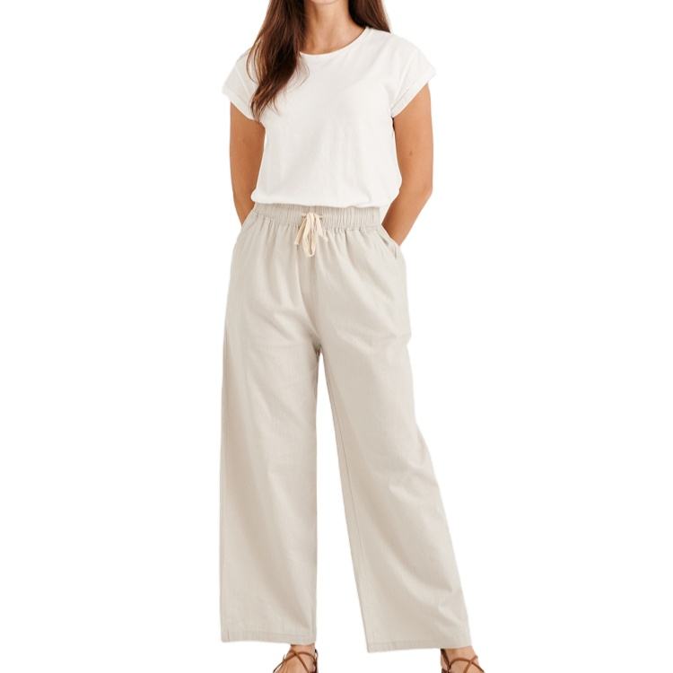 กางเกงยาวเต็มตัวสำหรับผู้หญิงใส่ในฤดูร้อนผ้าคอตตอนลินินระบายอากาศได้ดีสีพื้นเรียบใส่สบายขายส่งโลโก้สำหรับทุกเพศ