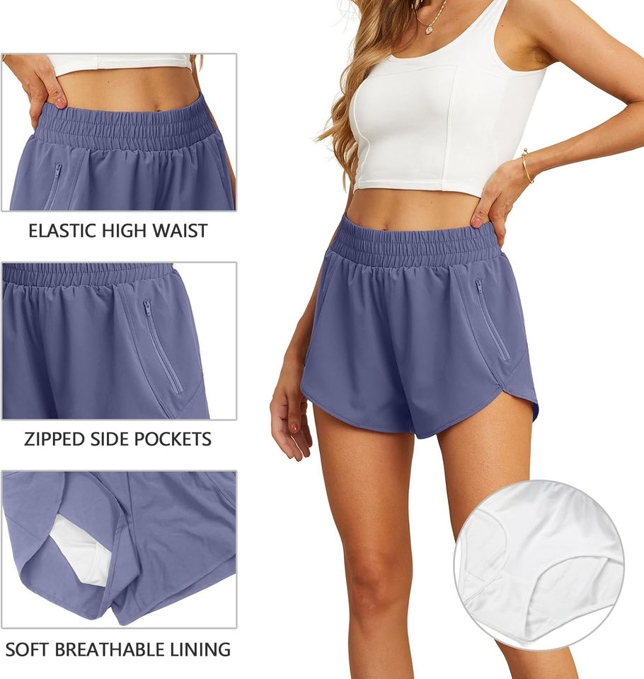 กางเกงขาสั้นเอวสูงสำหรับผู้หญิงใส่ในฤดูร้อนกางเกงวิ่งแห้งเร็วระบายอากาศได้ดีสำหรับใส่ออกกำลังกายในยิม
