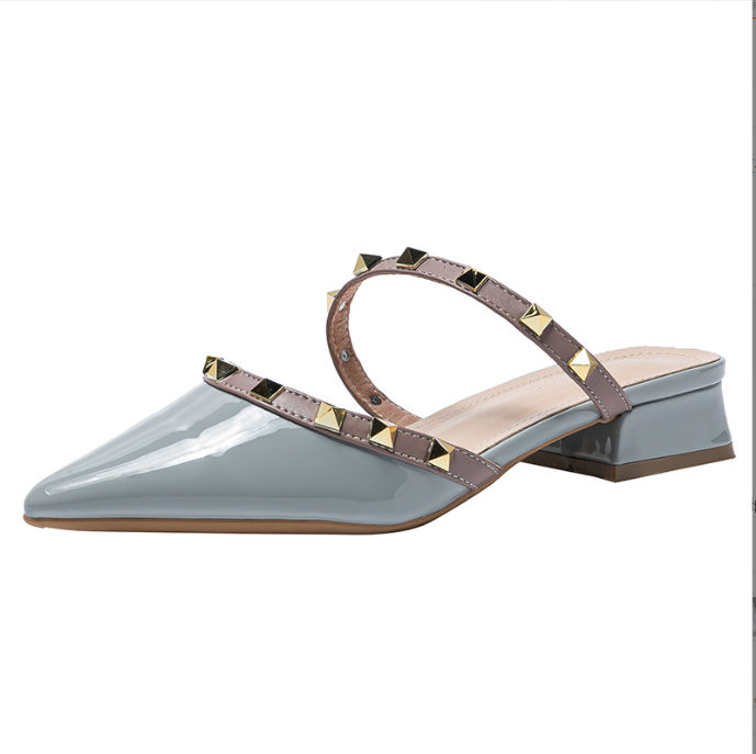 รองเท้าส้นสูงปานกลางหัวแหลมสำหรับผู้หญิง, รองเท้าแตะหนังสิทธิบัตรตอกหมุดรองเท้าแฟชั่น