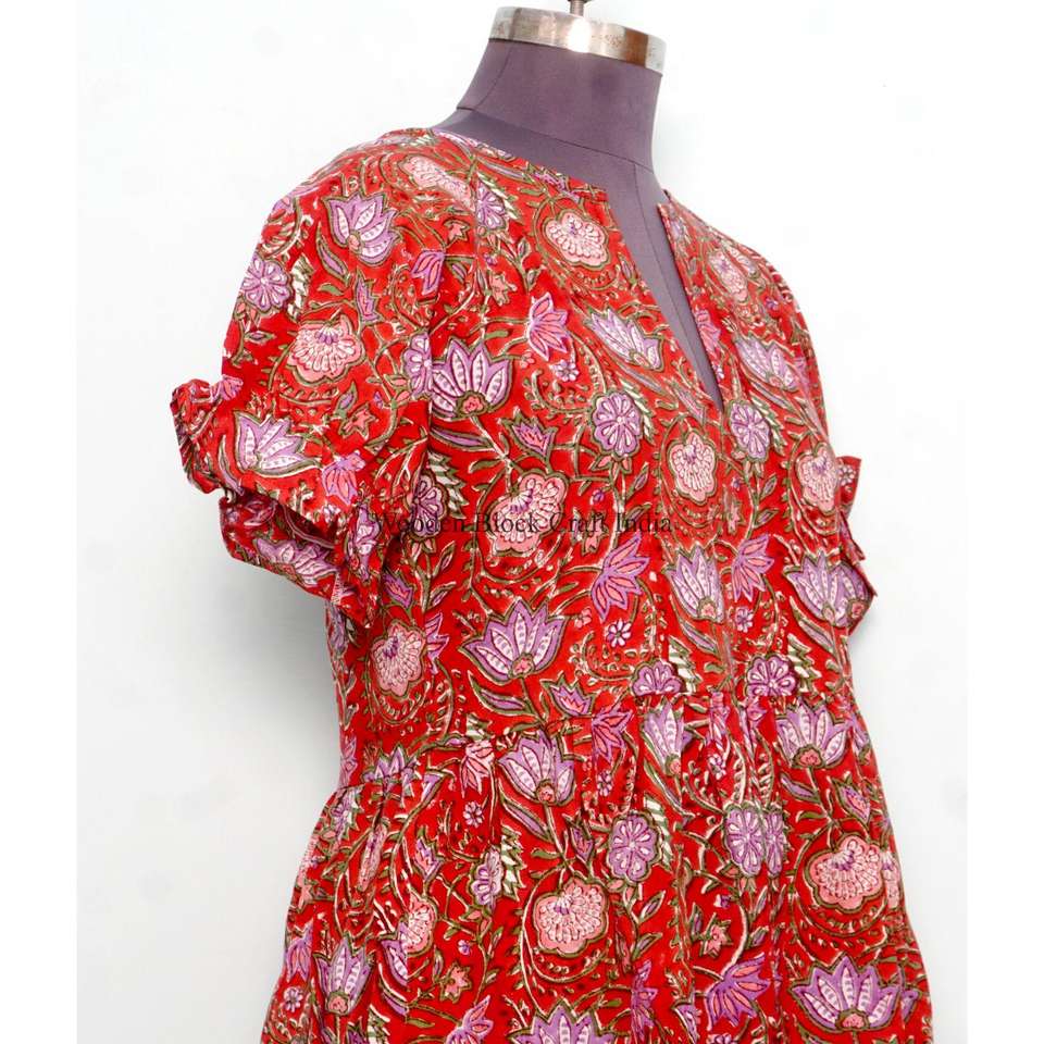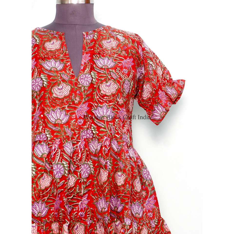 ชุดเดรสทรงเอสำหรับฤดูร้อนสำหรับผู้หญิง ผ้าฝ้ายพิมพ์ลายบล็อกทำมือ แต่งลูกไม้ลายดอกไม้ ระบายอากาศได้ดี เป็นมิตรกับสิ่งแวดล้อม มีกระเป๋า