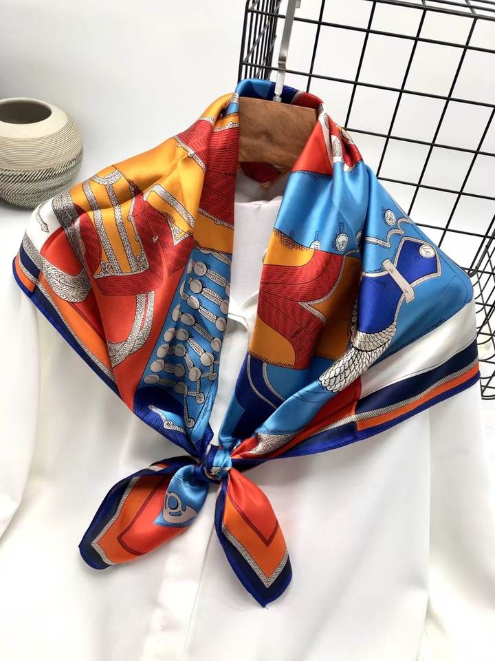 ผ้าพันคอผ้าไหมสี่เหลี่ยมขนาด90*90ซม. สำหรับผู้หญิงผ้าพันคอแบบดั้งเดิมสำหรับป้องกันคอผ้าคลุมไหล่ฝรั่งเศสสำหรับฤดูร้อน