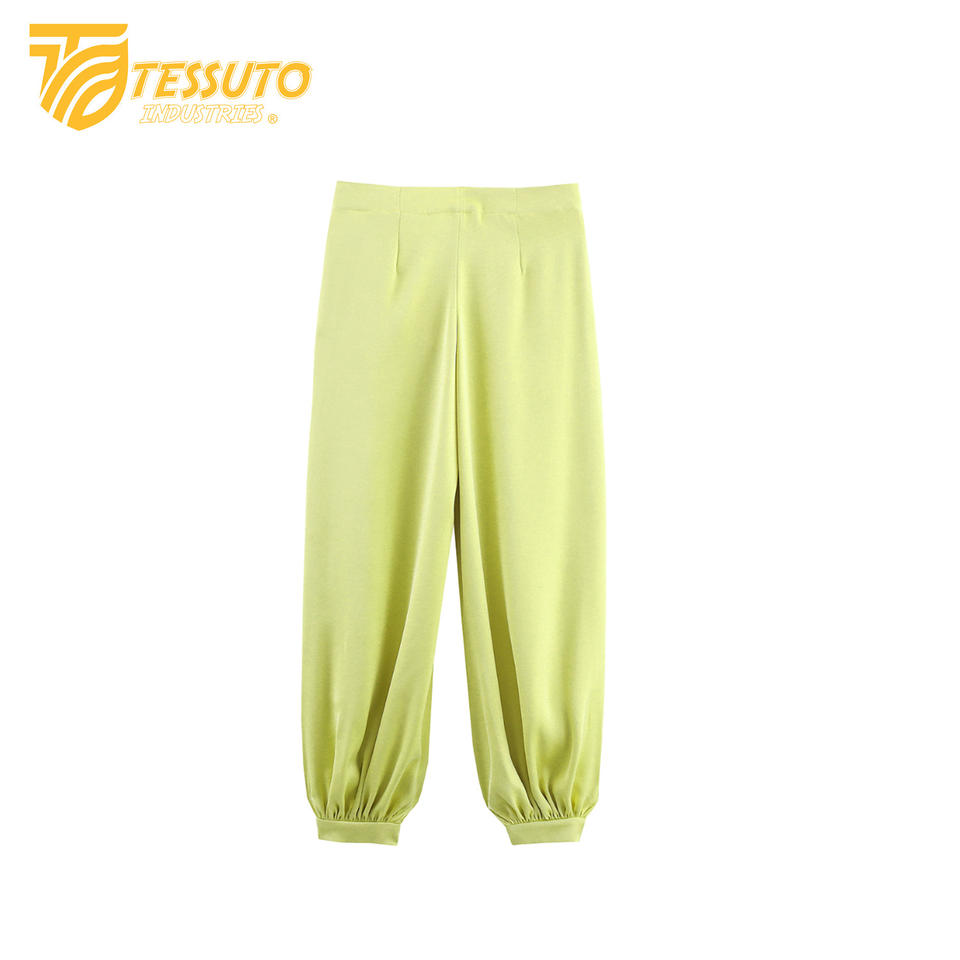กางเกงเอวสูงทรงหลวมแบบมีเชือกผูกสำหรับผู้หญิงกางเกงปิดแบบลำลองทำจากผ้าไหมทรงหลวมใหม่ฤดูร้อน