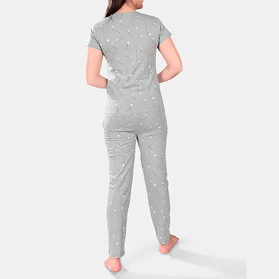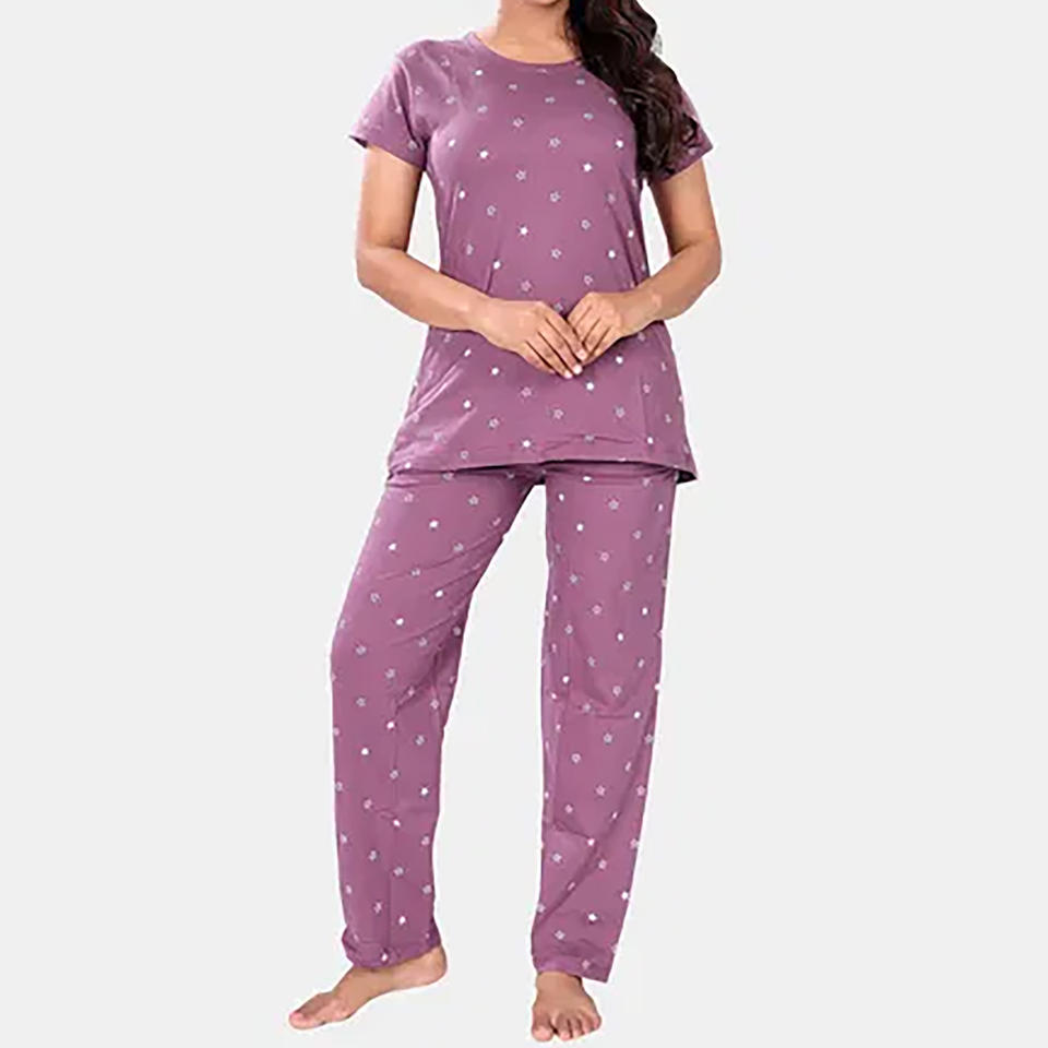 ชุดนอนแขนสั้นสำหรับผู้หญิงชุดนอนคาปรีจับจีบมีกระเป๋าสำหรับใส่กลางคืน
