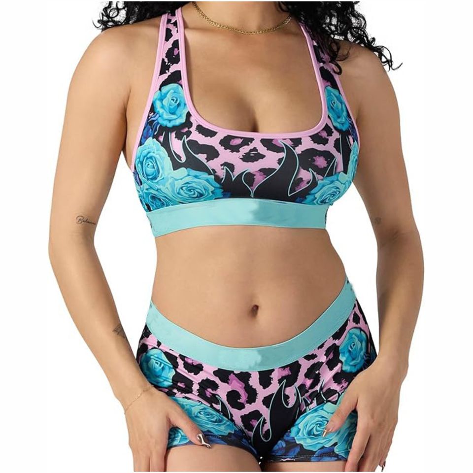 ชุดสปอร์ตบรากางเกงขาสั้นสำหรับผู้หญิงชุดออกกำลังกายแห้งเร็วยืดหยุ่นสูงชุดออกกำลังกายที่ระบายอากาศได้ดีเป็นมิตรกับสิ่งแวดล้อมชุดยิมปรับแต่งเอวได้
