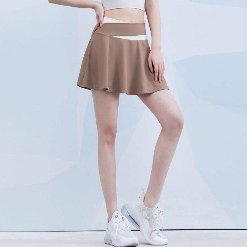 กระโปรงเล่นโยคะกางเกงฟิตเนสสีตัดกันแห้งเร็วสำหรับผู้หญิงกางเกงสำหรับใส่เล่นกีฬาฟิตเนสเล่นกีฬาฤดูร้อน
