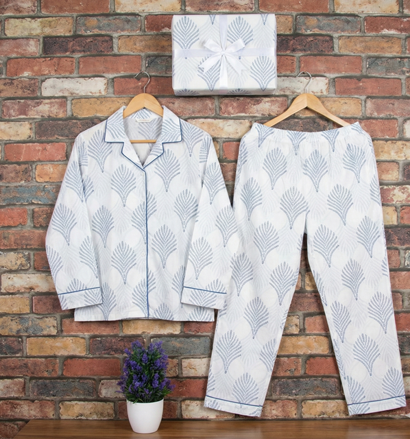 ชุดนอนผ้าฝ้ายพิมพ์ลายปักลายด้วยเครื่องจักรสำหรับผู้หญิง ฤดูร้อน/ฤดูใบไม้ผลิ เนื้อผ้านุ่ม ใส่ได้สองด้าน แขนยาว ทำด้วยมือ