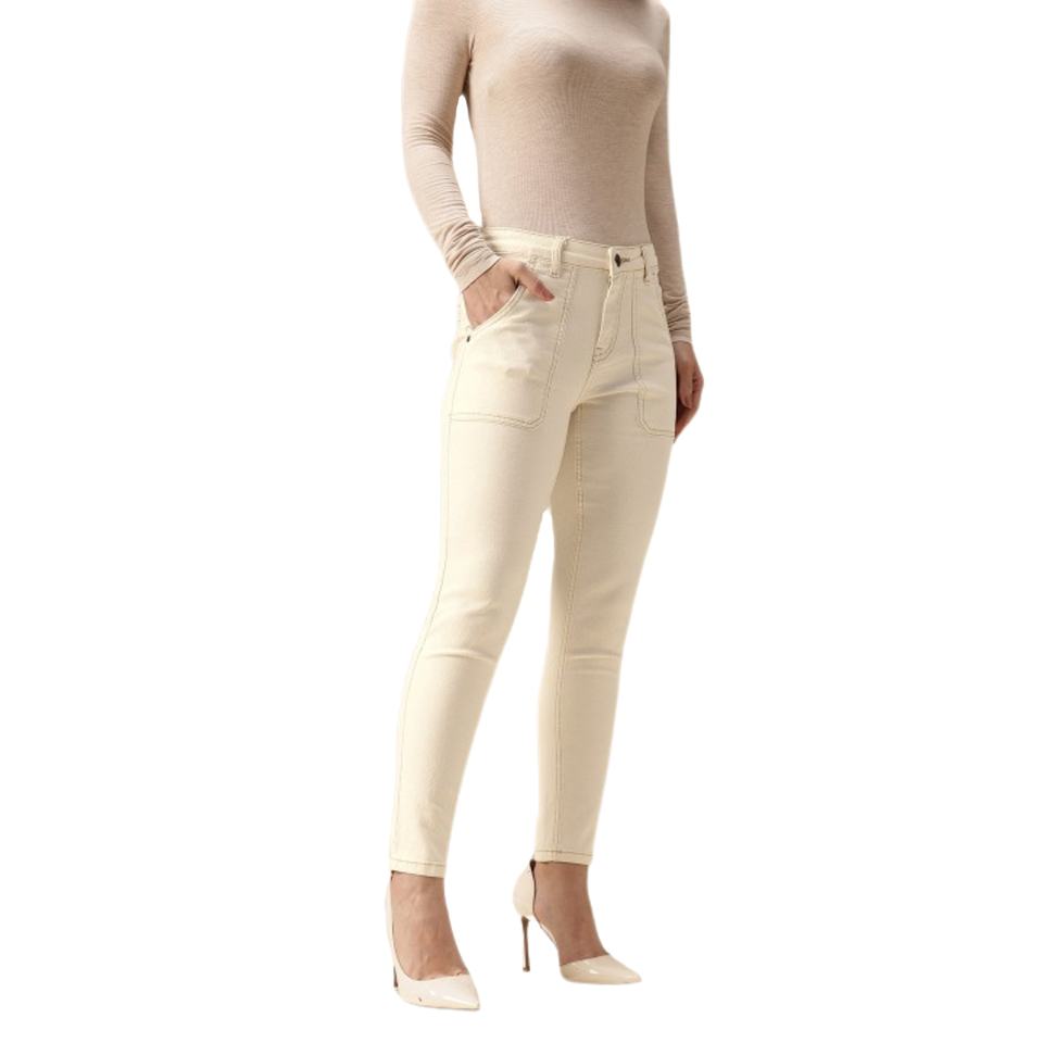 กางเกงยีนส์ผ้ายืดทรงสกินนี่สำหรับผู้หญิง เนื้อผ้าคอตตอนผสม ยืดได้ดี ทนทาน ความยาวเต็มตัว มีหลายขนาดและความยาว