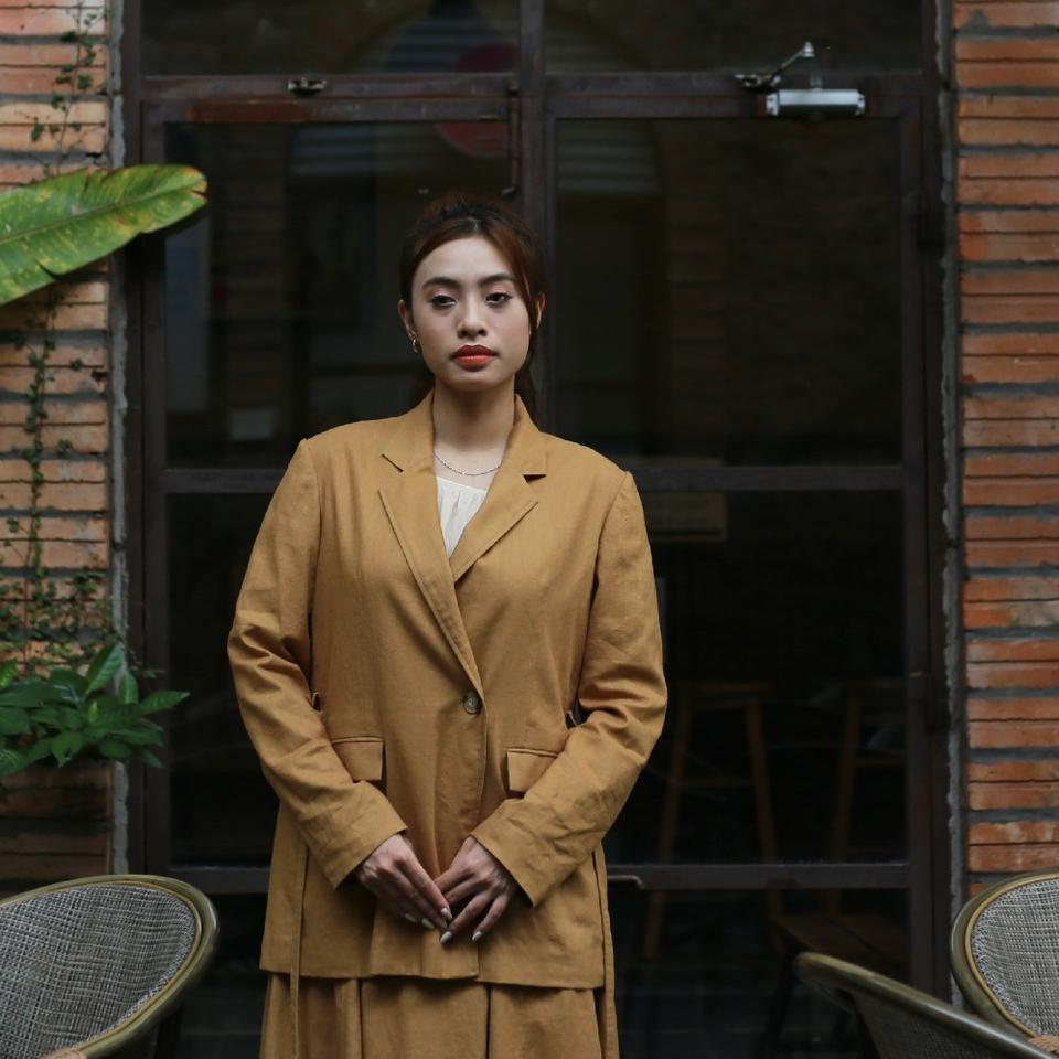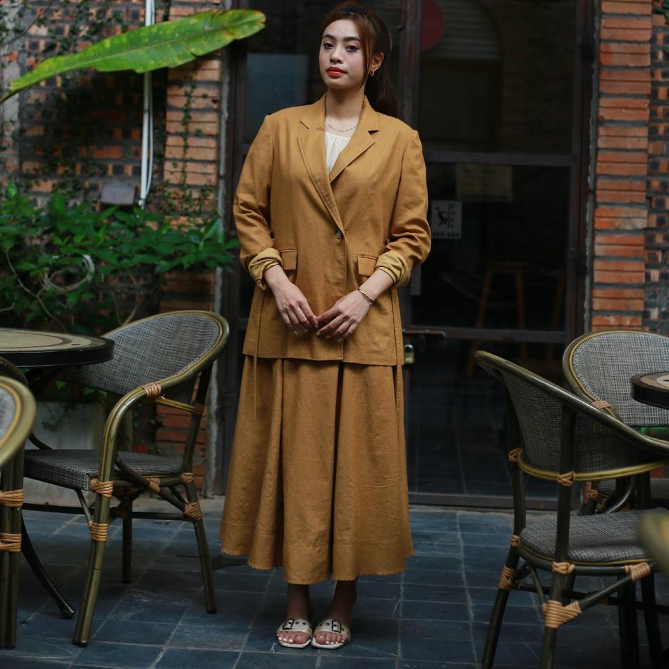 Women's Sustainable Ramie Slouch Tie Jackets Plaid Pattern Woven Cotton Front Flap Button Decor Autumn Winter Summer Processed