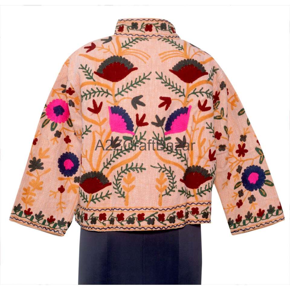 เสื้อแจ็คเก็ตบอมเบอร์ผ้าฝ้ายถักลายซูซานีสำหรับผู้หญิง แต่งระบายปักลายดอกไม้สไตล์วินเทจ ระบายอากาศได้ดี แห้งเร็ว เหมาะสำหรับฤดูหนาว
