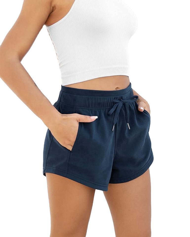 กางเกงขาสั้นเรียกเหงื่อของผู้หญิงกางเกงขาสั้นเนื้อผ้าฝ้ายเทอร์รี่มีกระเป๋ามีเชือกผูกสำหรับออกกำลังกายในฤดูร้อนแบบลำลองสำหรับ2026