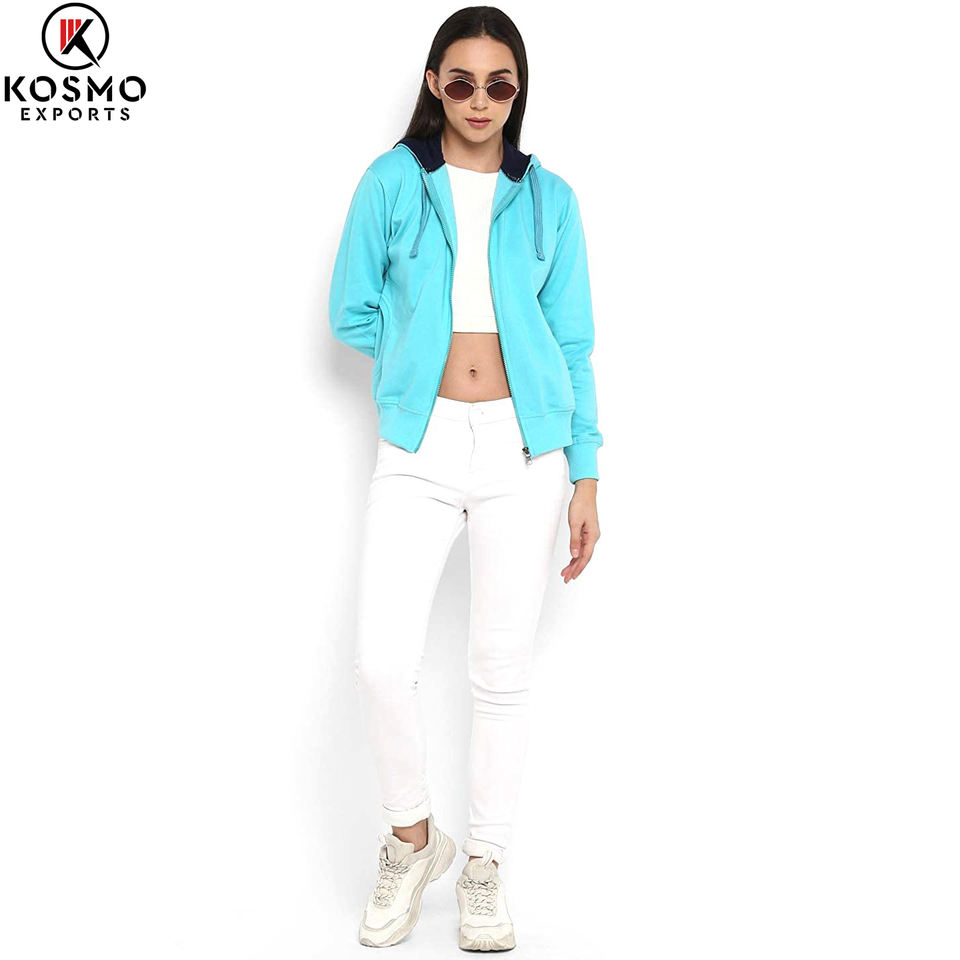เสื้อสเวตเตอร์มีฮู้ดสำหรับผู้หญิงสีฟ้ามีซิปสำหรับฤดูใบไม้ร่วงฤดูใบไม้ผลิฤดูหนาวน้ำหนักเบาพร้อมกระเป๋าข้าง