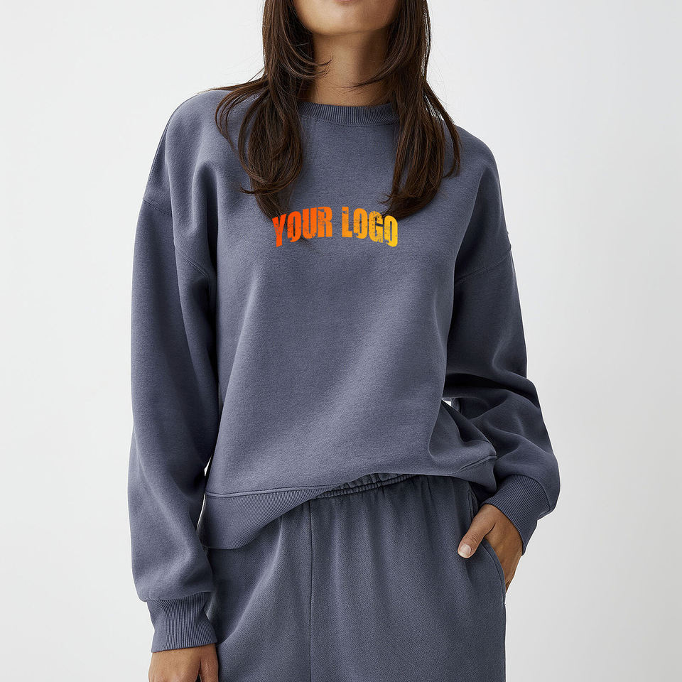 เสื้อสเวตเชิ้ตผู้หญิง ปักโลโก้ตามสั่ง พิมพ์ลาย ซักได้ แขนยาว ผ้าฝ้ายฟลีซ เสื้อกันหนาวแฟชั่นสำหรับฤดูใบไม้ร่วงและฤดูหนาว