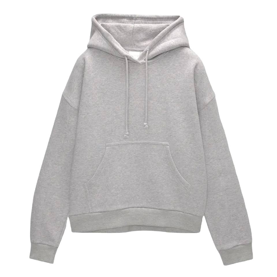 เสื้อฮู้ดสวมหัวขนแกะแบบกำหนดเองของผู้หญิงที่มีสไตล์ปกติตกแต่งลายลูกไม้สีพื้นสีเทา