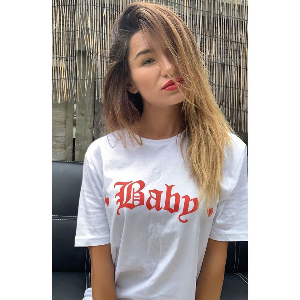 เสื้อยืดแขนสั้นสำหรับผู้หญิงเสื้อยืดเอวลอยพิมพ์โลโก้ตามสั่งไซส์ใหญ่พิเศษสำหรับฤดูร้อน