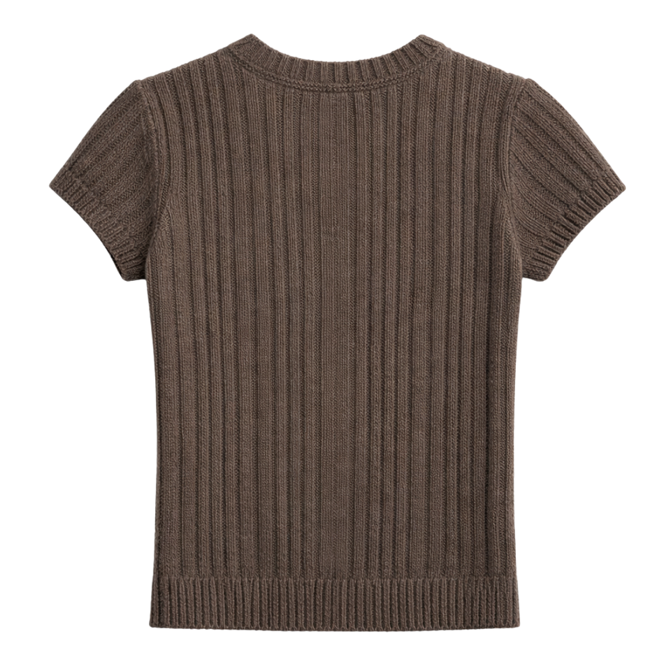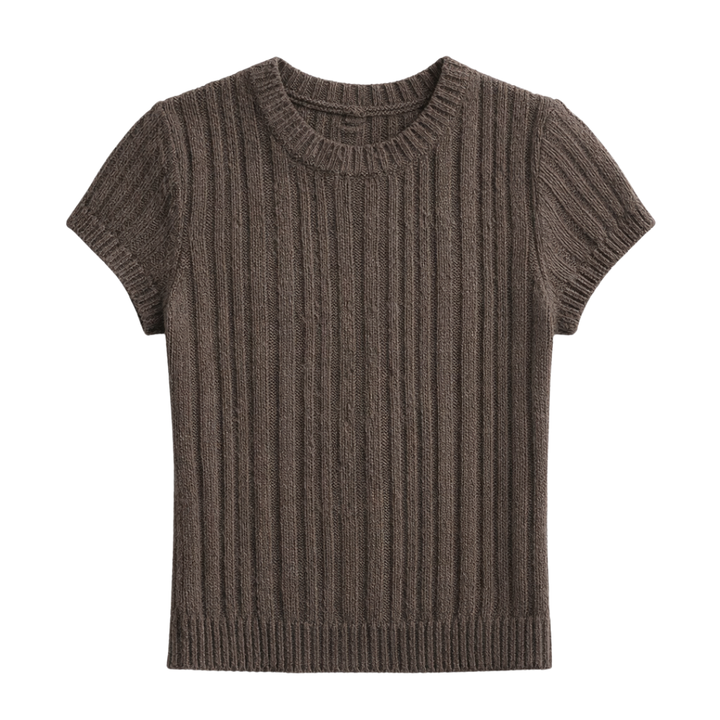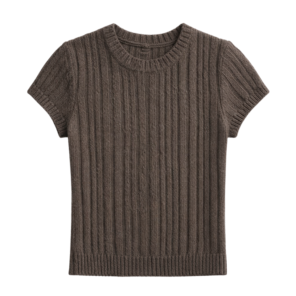 เสื้อยืดผู้หญิงแบบถักลายริบแขนสั้นคอกลมทรงเข้ารูปลำลองสำหรับฤดูร้อนเนื้อผ้านุ่มยืดได้สวมใส่สบายทุกวัน
