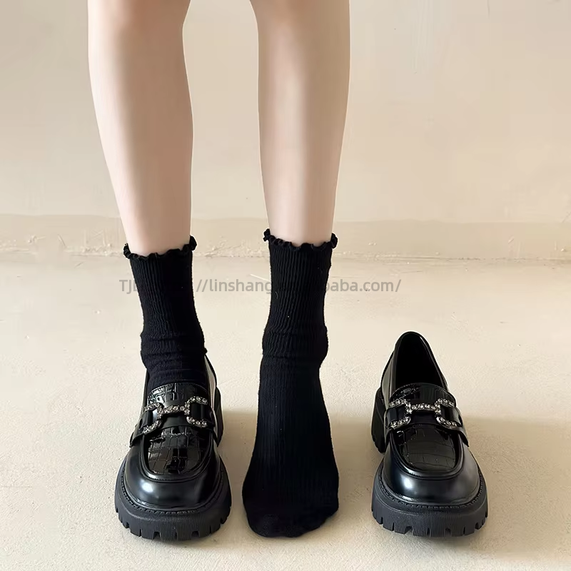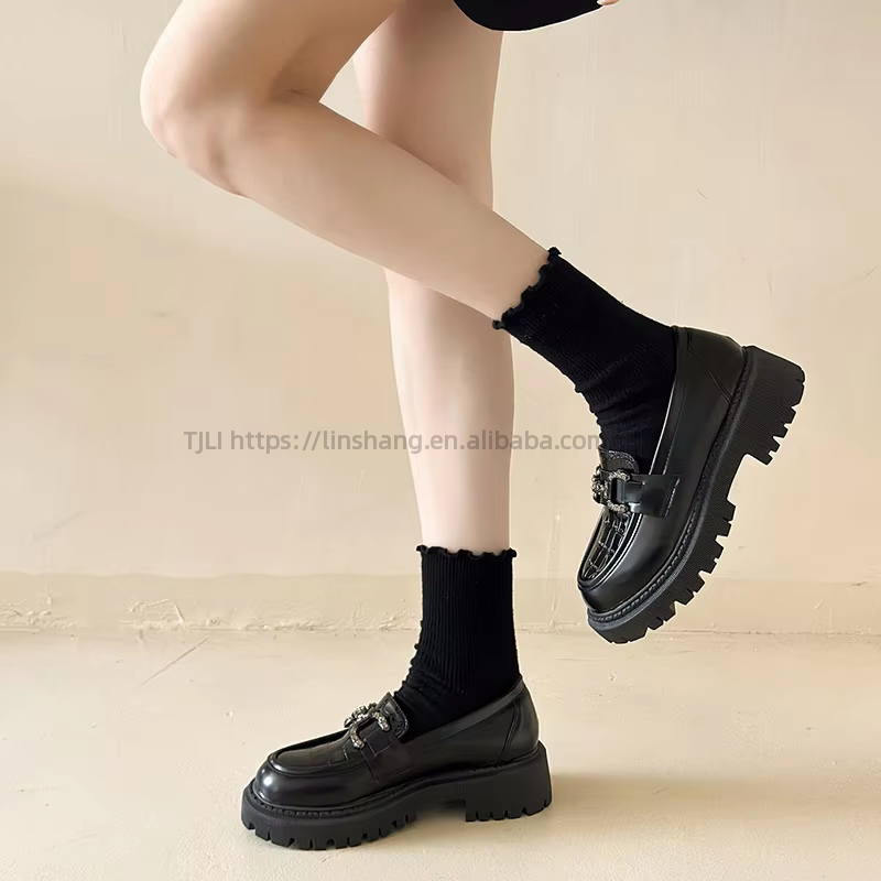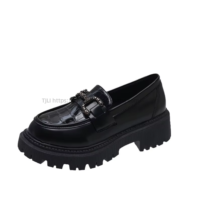 รองเท้าหนังส้นหนาประดับเพชรพลอยสำหรับผู้หญิง รุ่นใหม่ล่าสุดสำหรับฤดูใบไม้ร่วง สไตล์อังกฤษ พื้นหนา ไซส์ใหญ่