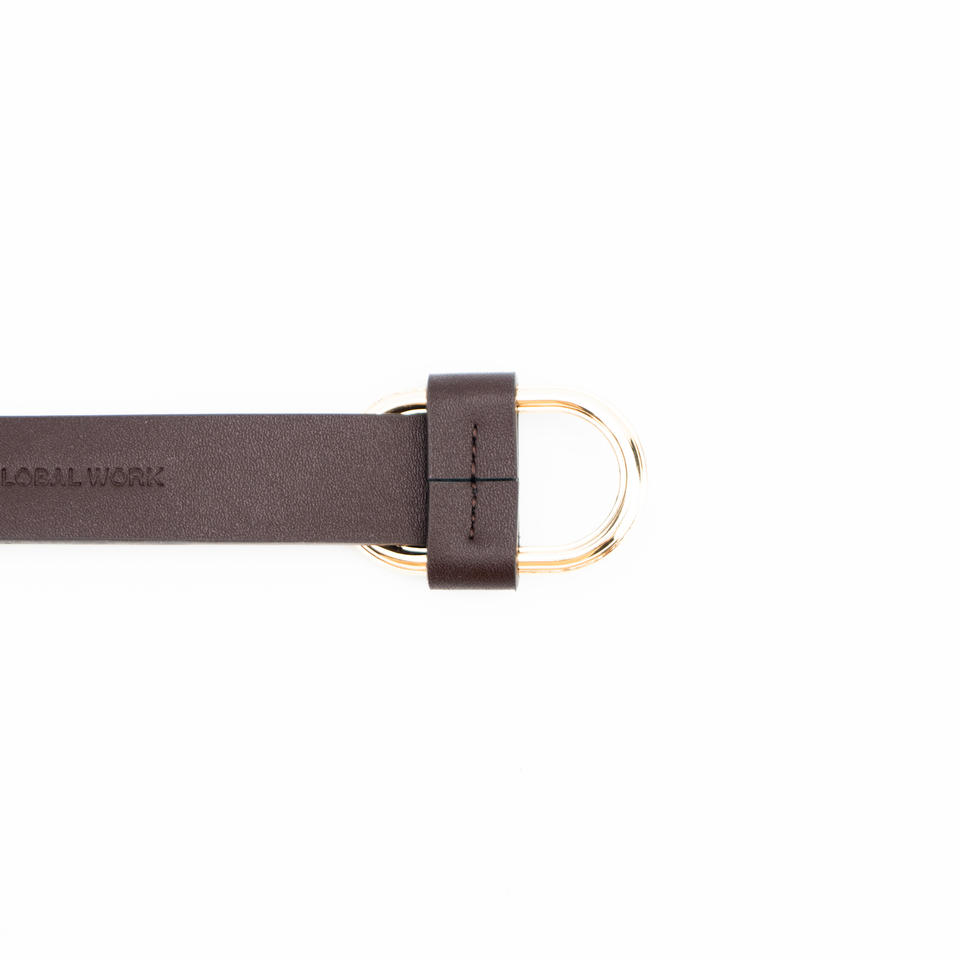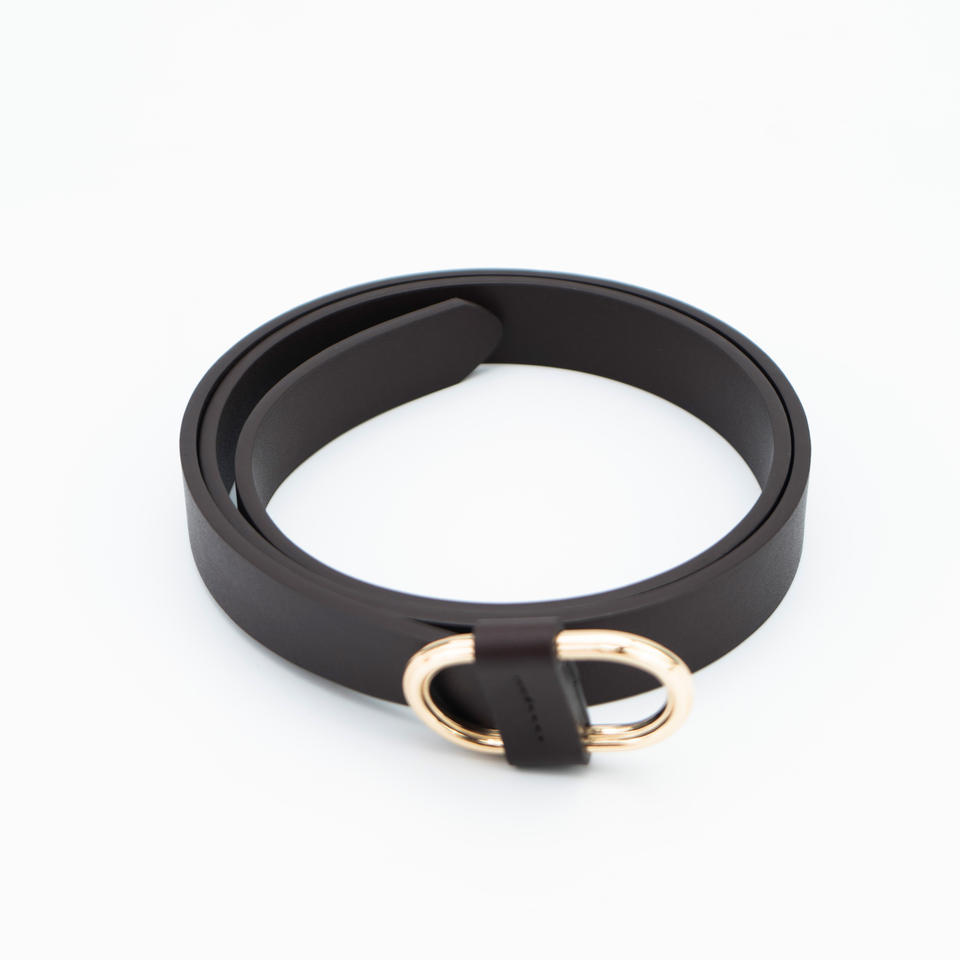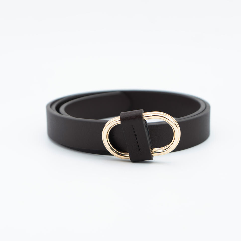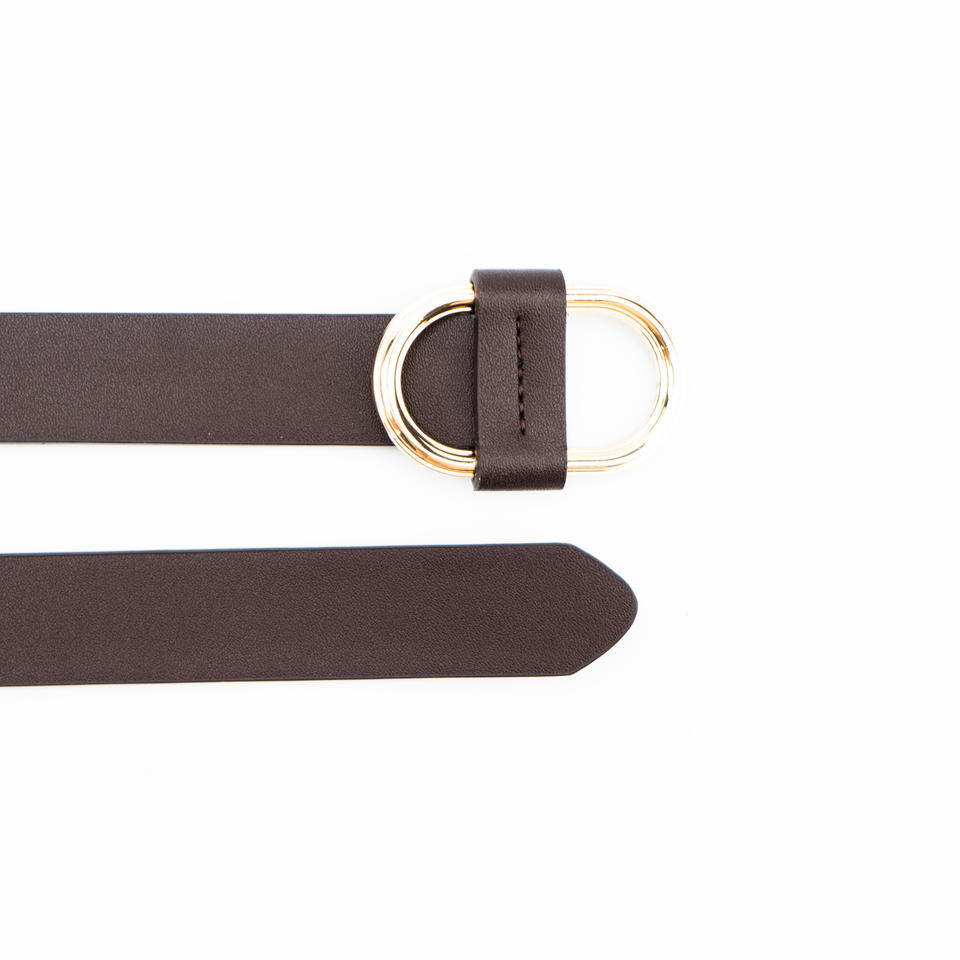 เข็มขัดหนังแท้บางสำหรับผู้หญิงพร้อมหัวเข็มขัดวงแหวนทองคู่