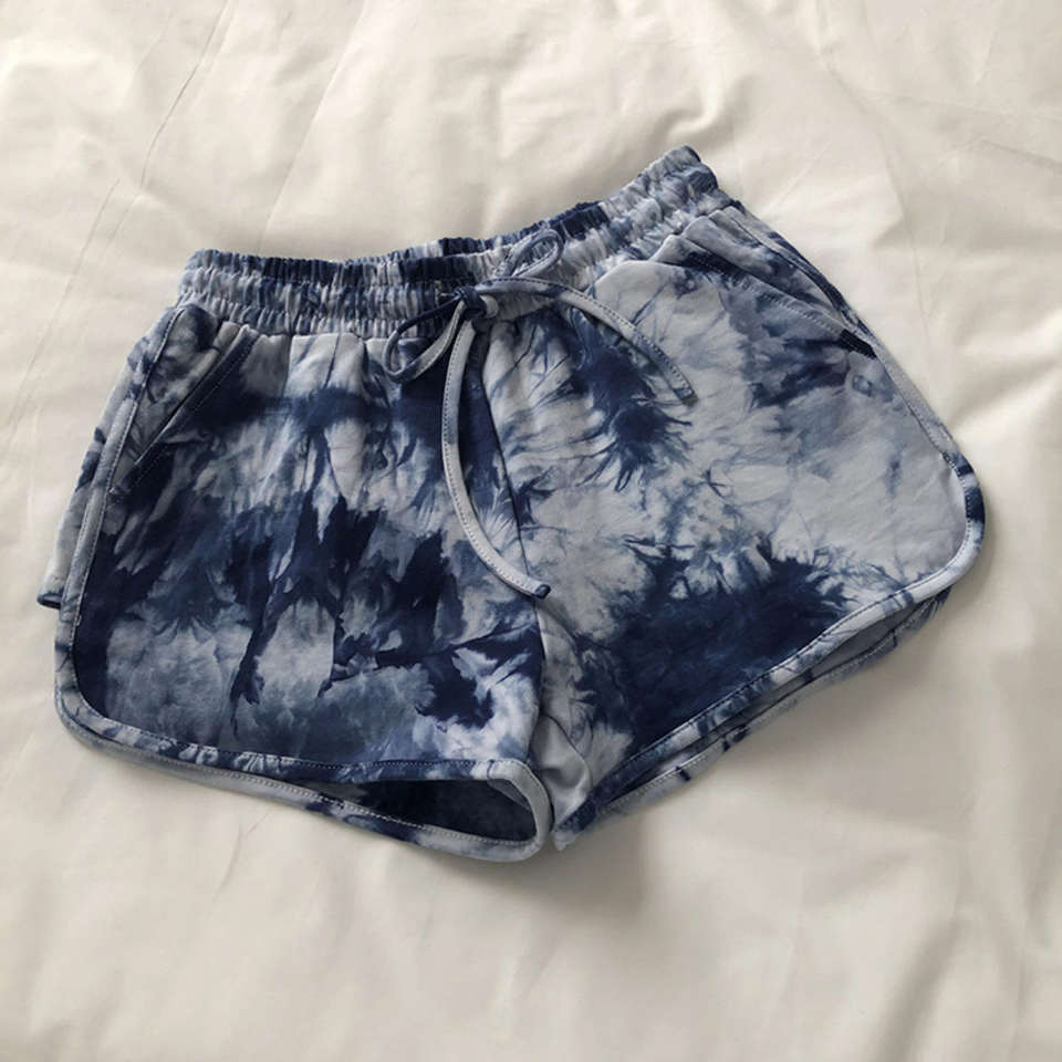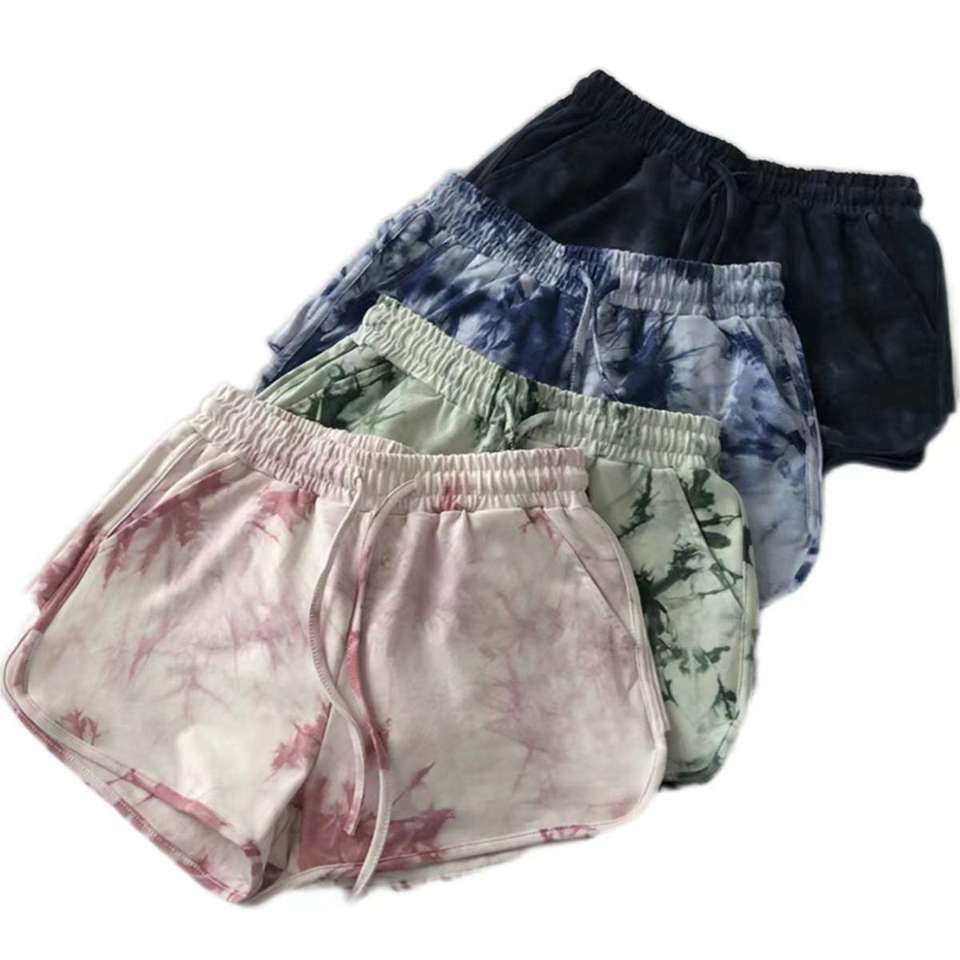 กางเกงรัดรูปมัดย้อมสำหรับผู้หญิงกางเกงขาสั้นสำหรับใส่วิ่งกางเกงเล่นกีฬาพิมพ์ลายสำหรับไปยิม