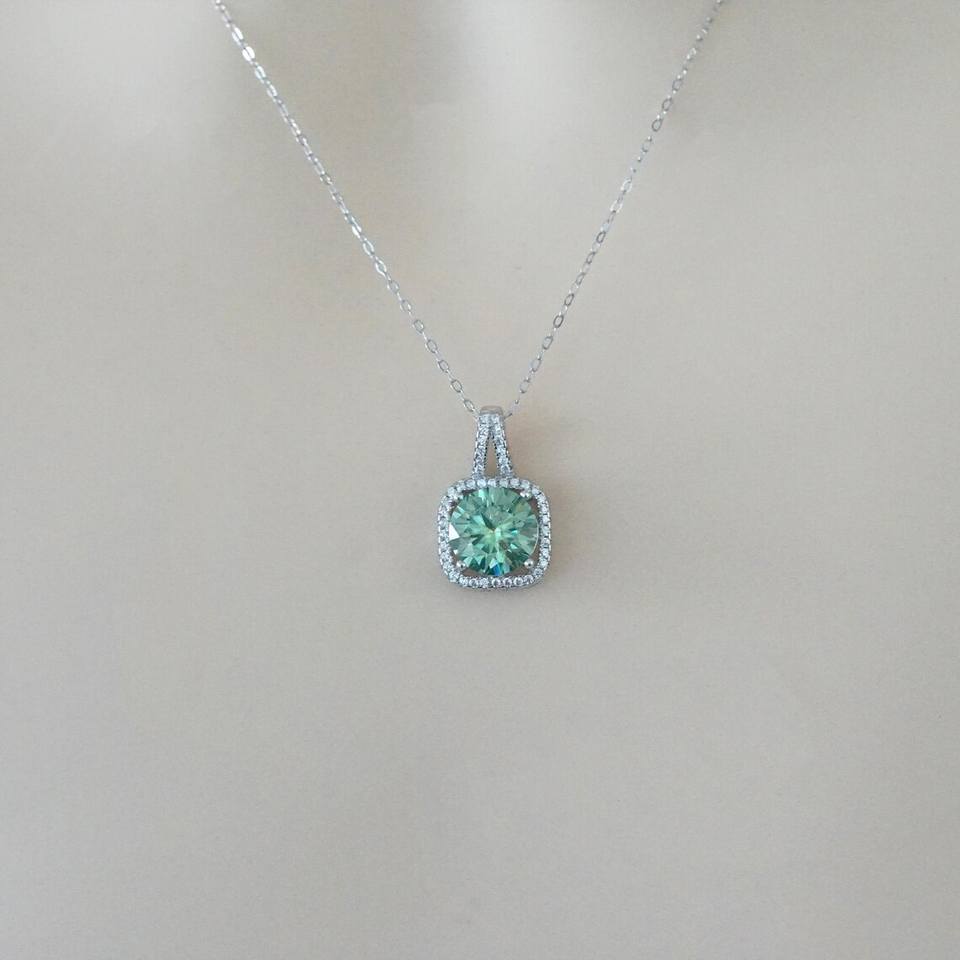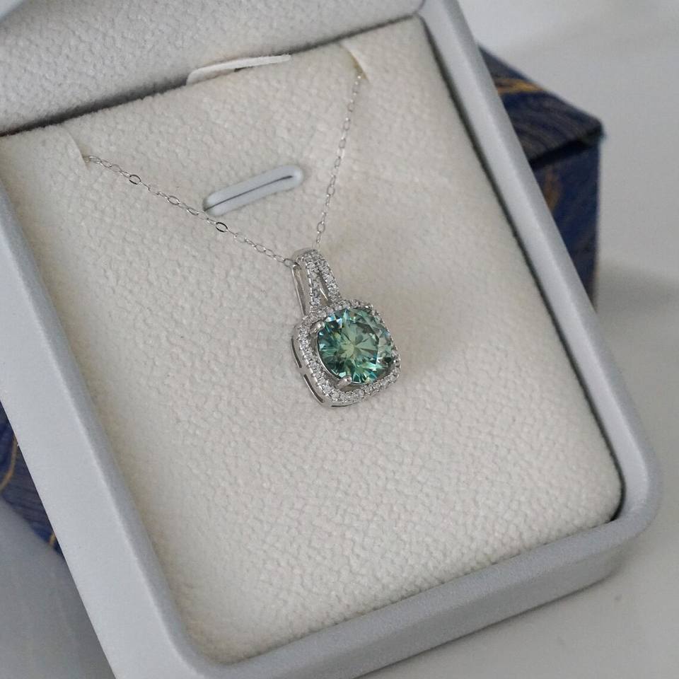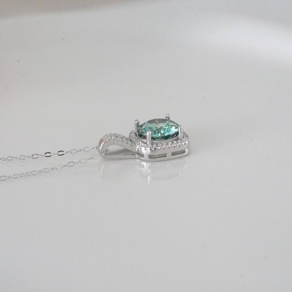 สร้อยคอผู้หญิง Tishya เงินแท้ 925 ประดับมอสซาไนต์สีเขียวทรงกลม 0.5 กะรัต พร้อมจี้ชุบทองและโรสโกลด์