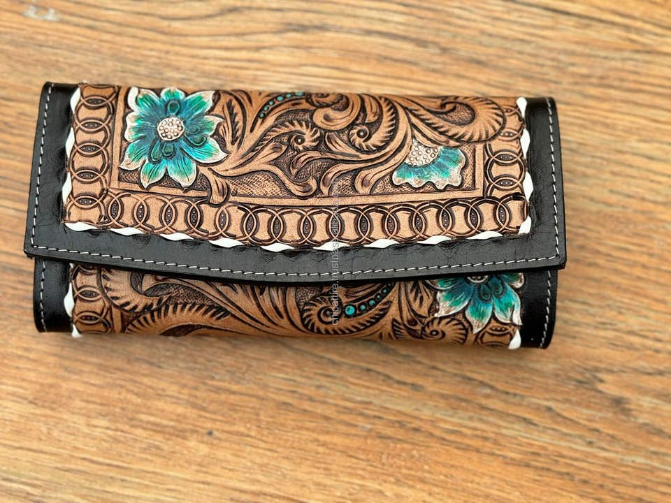 กระเป๋าสตางค์หนังมีฝาปิดเย็บด้วยมือหนังแท้สำหรับผู้หญิงกระเป๋าสตางค์ใส่บัตรเครดิตแบบตะวันตก