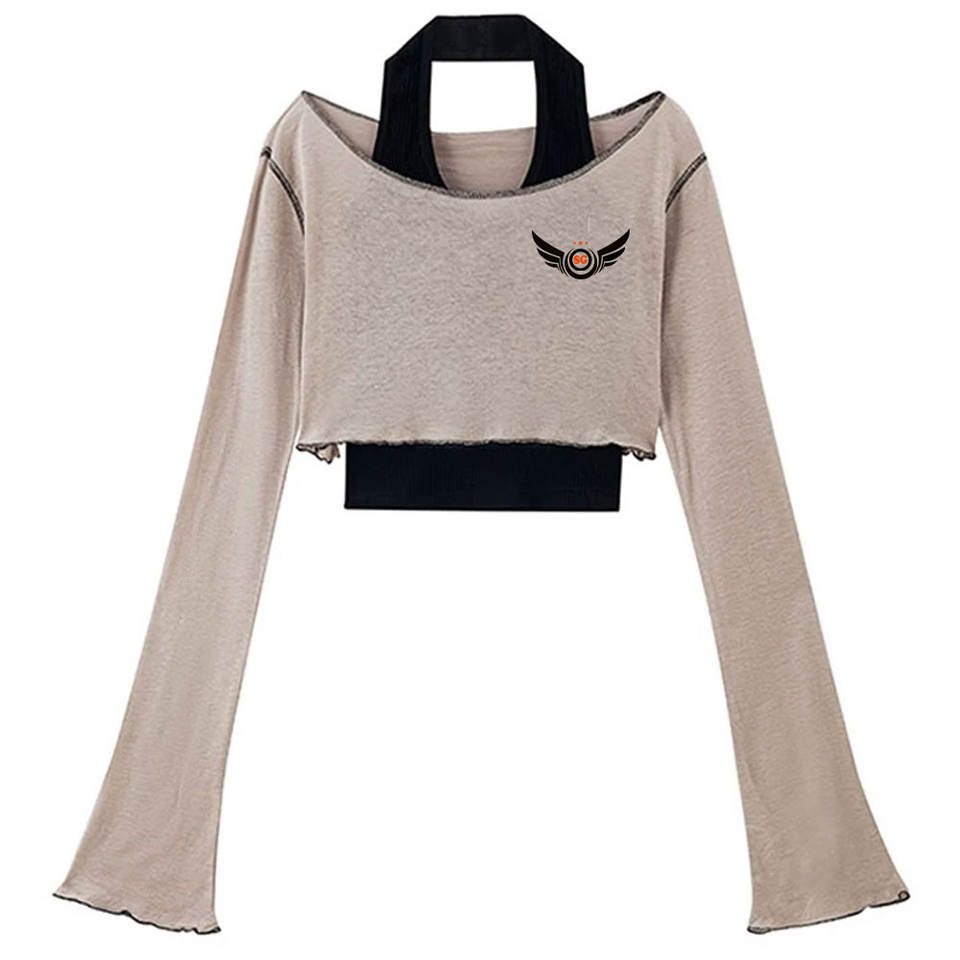เสื้อยืดครอปแขนยาวคอกลมสำหรับผู้หญิง
