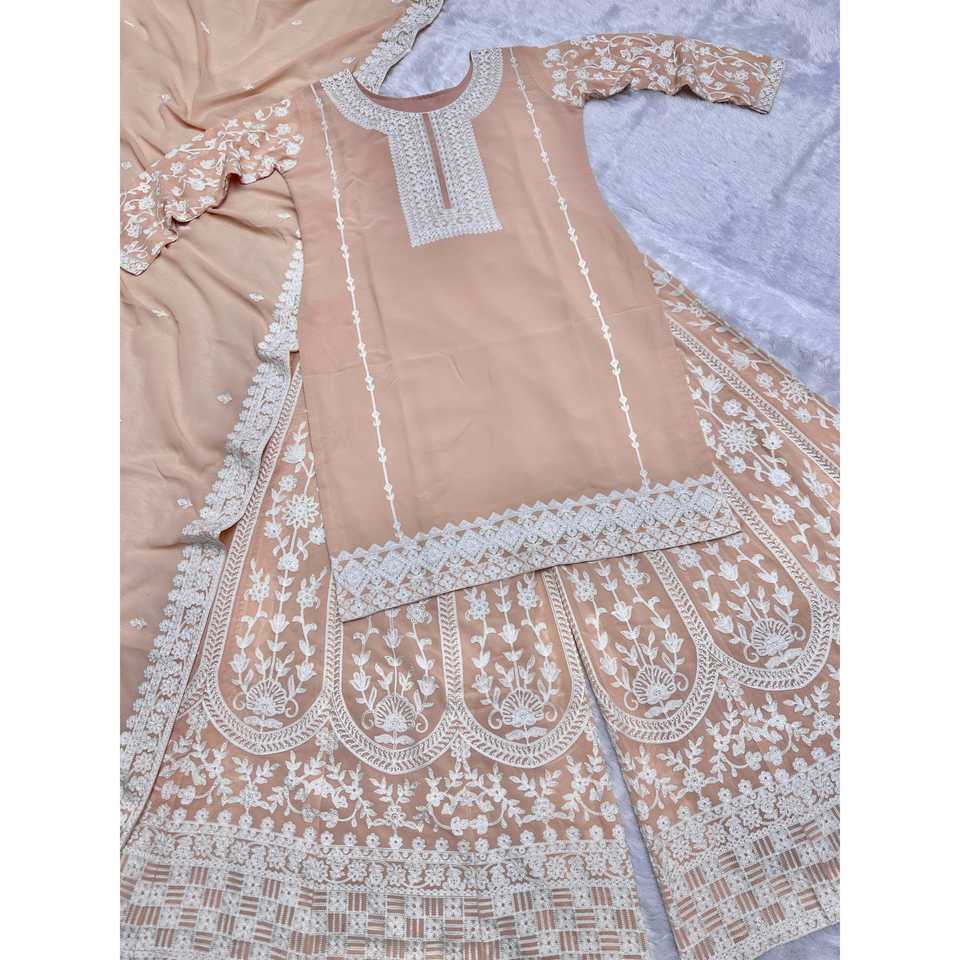 Women's Top-Plazzo Set with Embroidery Chain Stitched Work and Dupatta Fashionable Top and Dupatta with Elegant Embroidery Work