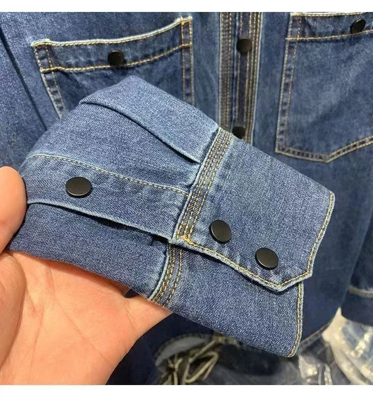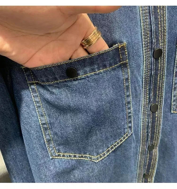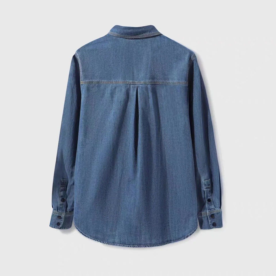 เสื้อเชิ้ตเดนิมผู้หญิงสุดเท่ห์ ผ้าฝ้ายออร์แกนิค 100% มีกระเป๋าผ้าสองช่องด้านหน้า ทรงลำลอง สไตล์คาวเกิร์ล ทรงเข้ารูป ผลิตตามแบบ OEM