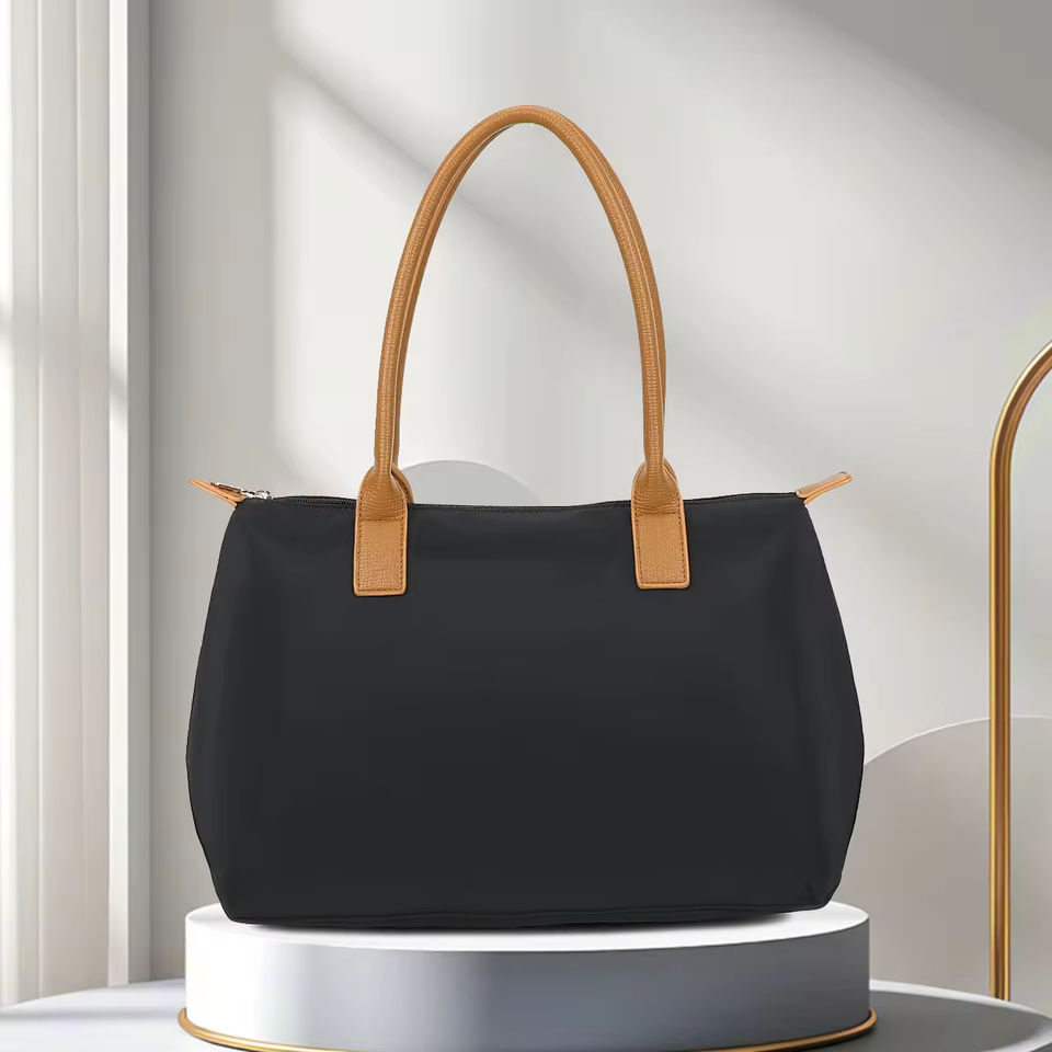 กระเป๋าโท้ทผู้หญิง ดีไซน์ซิปเก๋ หนัง PU ลาย Saffiano สไตล์ลำลอง พร้อมสายโซ่และซับในไนลอน เหมาะสำหรับไปเรียน ท่องเที่ยว และช้อปปิ้ง
