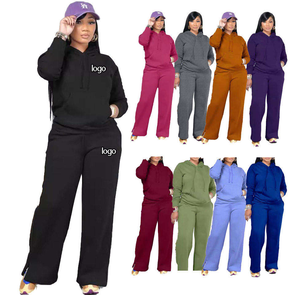 ชุดวอร์ม2ชิ้นทรงหลวมมีฮู้ดสำหรับผู้หญิงกางเกงขาบานสำหรับออกกำลังกาย
