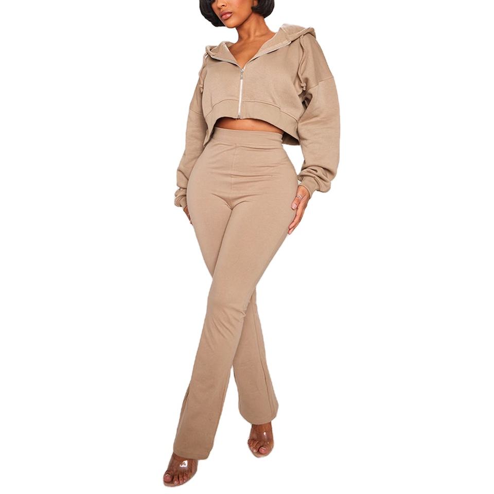 ชุดวอร์มผู้หญิงพร้อมโลโก้ของคุณ แฟชั่นล่าสุดปี 2025 กางเกงวอร์มทรงบาน ชุดวอร์มลายฟอกสี ชุดเซ็ตสองชิ้นถักทรงเข้ารูป