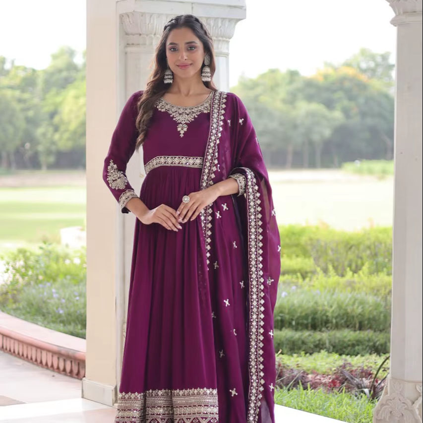 ชุดเดรสแบบดั้งเดิมของผู้หญิงอินเดียและปากีสถาน แขนยาว ปักลาย งานฝีมือ ความยาวคลุมเท้า สวมใส่สบาย