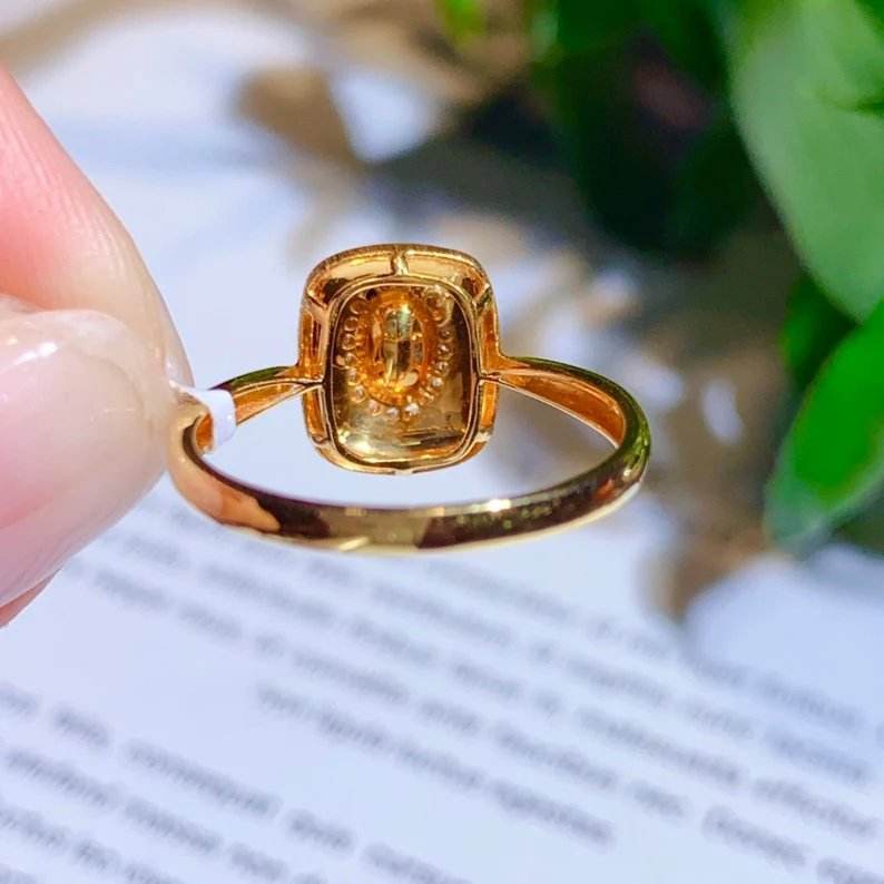 แหวนทอง14K สุดอินเทรนด์สำหรับผู้หญิงหินแซมเบียมรกตธรรมชาติสำหรับงานเลี้ยงฉลองครบรอบวันเกิด