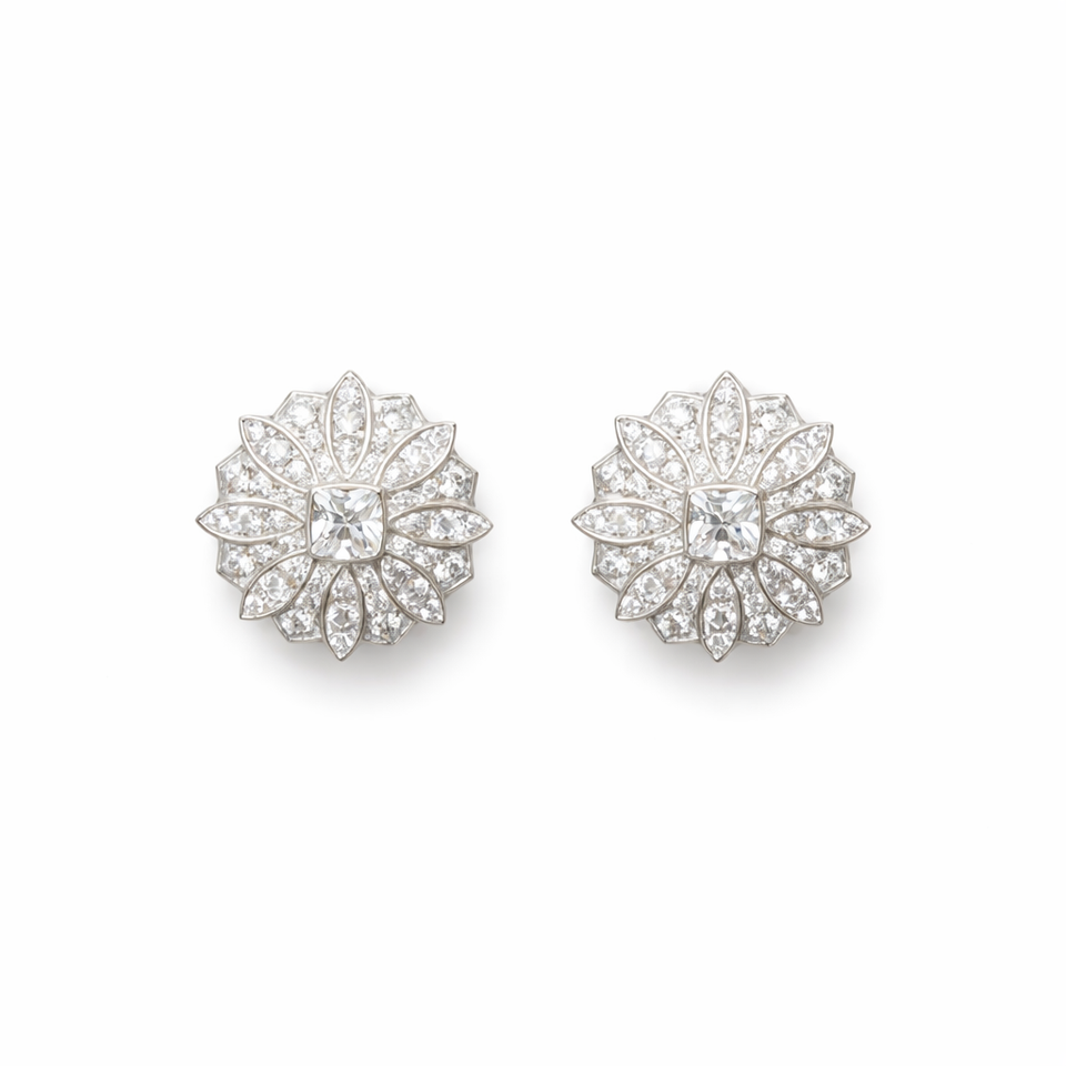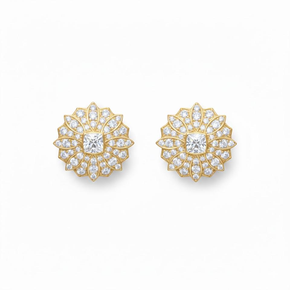 ต่างหูเพชรทรงดอกไม้ทองคำแท้ 14K ดีไซน์ทันสมัยสำหรับผู้หญิง เพชรเพาะเลี้ยงในห้องปฏิบัติการ ทรงคุชชั่น สไตล์วินเทจ อาร์ตเดโค ของขวัญสำหรับเจ้าสาว