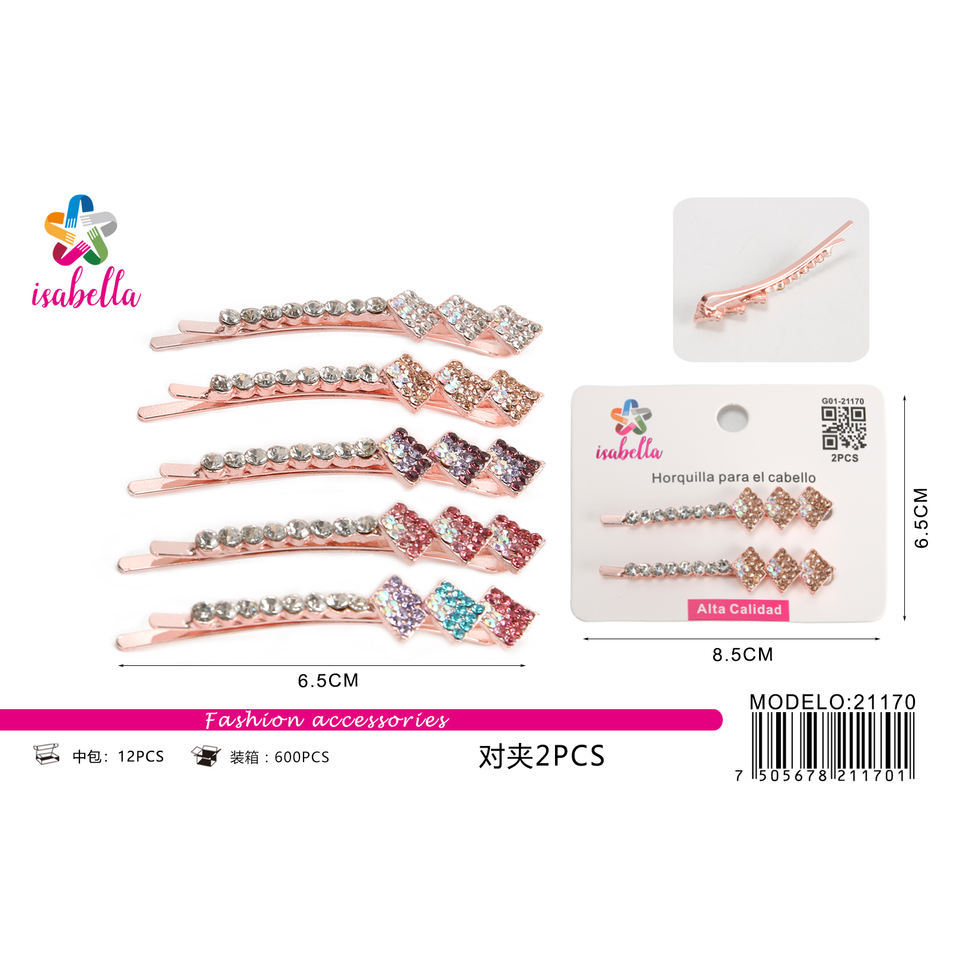 Women's Trendy 2-Piece Hair Clip Set G01-21170 Stylish Metal Hair Accessories with Elegant Decorative Colorful Jewelry