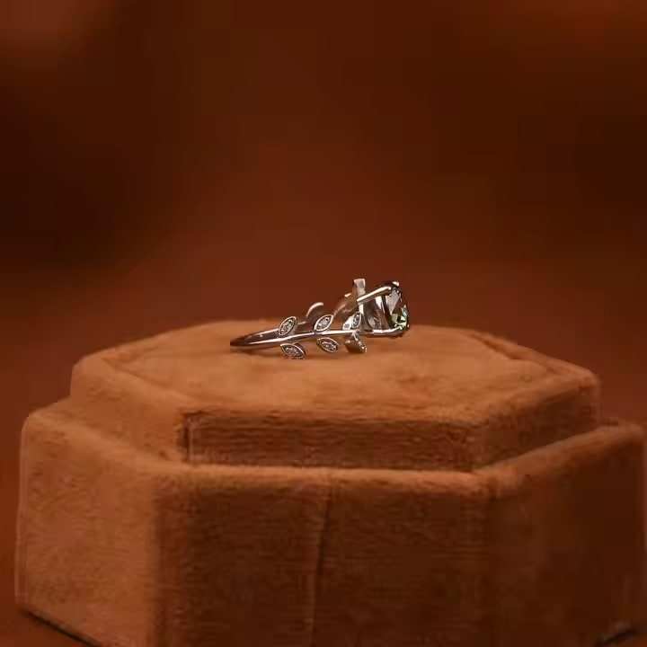 แหวนข้อเสนอการออกแบบลายดอกไม้สุดอินเทรนด์ของผู้หญิงพร้อมแหวนทองคำแท้14K สำหรับปลูกในแล็บแฟนซีสีเขียวทรงกลม