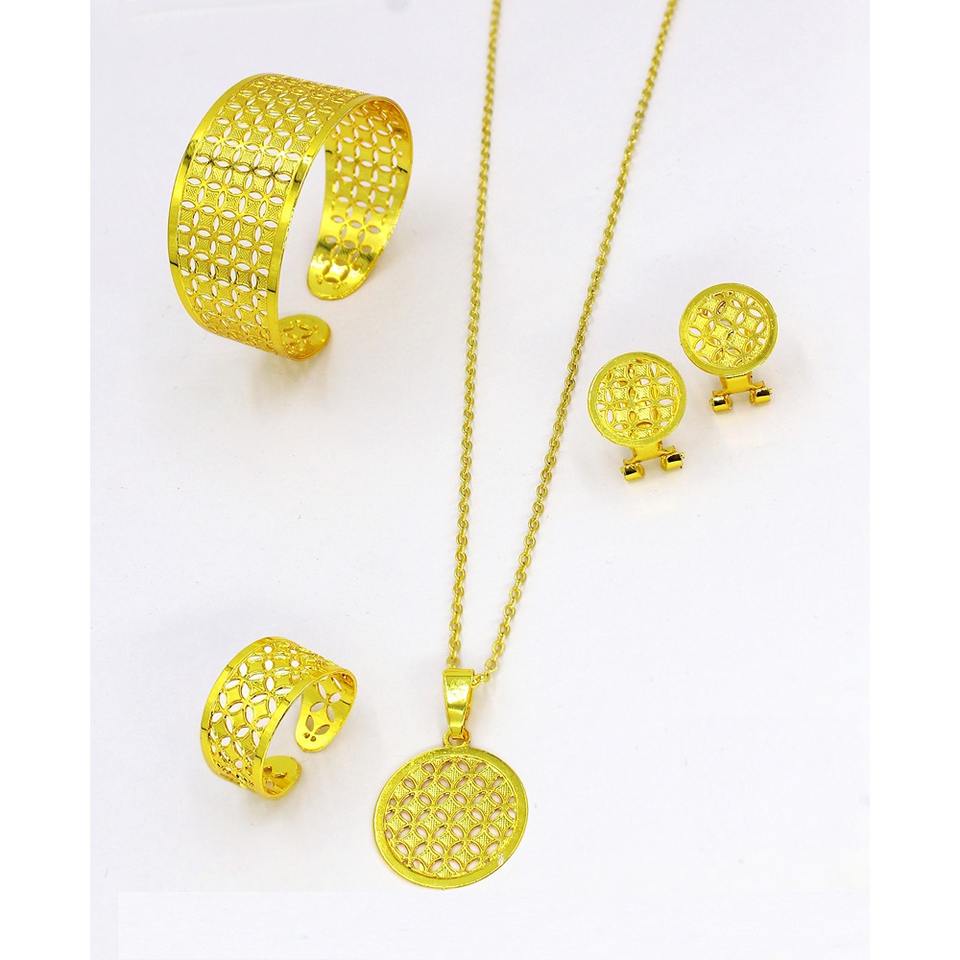 ชุดแหวนกำไลทองเหลืองชุบทองทันสมัยของผู้หญิงชุดรูปแบบใบไม้คลาสสิกสำหรับงานหมั้นงานแต่งงานเครื่องประดับ