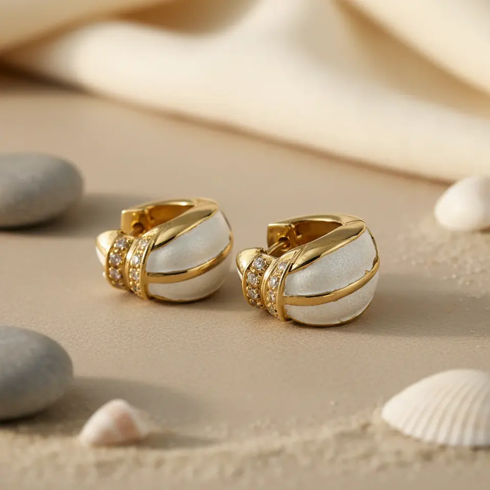 ต่างหูห่วงชุบทองคำขาวเคลือบเงา ดีไซน์ทันสมัยสำหรับผู้หญิง ประดับเพชรทรงเจ้าหญิง สไตล์ Huggie เครื่องประดับแนวศาสนา