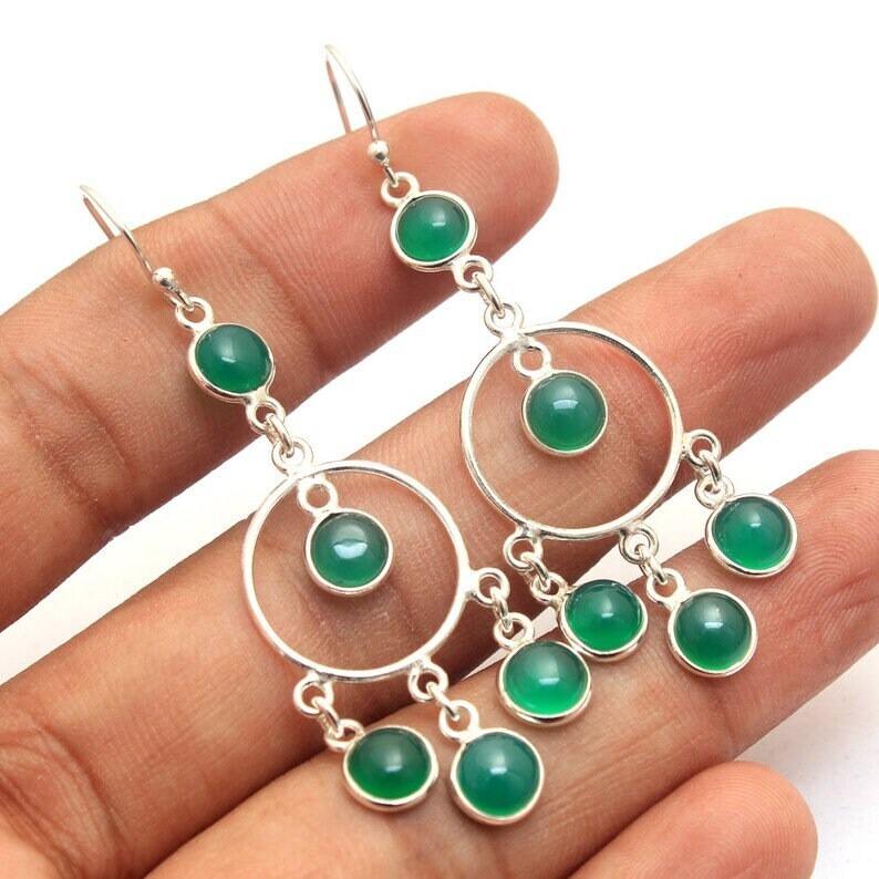ต่างหูห้อยประดับพลอยสีเขียวอ่อนอินเดียสุดอินเทรนด์สำหรับผู้หญิง เงินแท้ 925 เครื่องประดับสำหรับงานปาร์ตี้