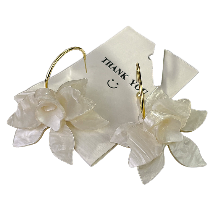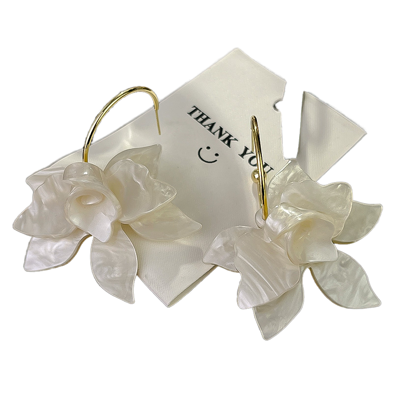 ต่างหูห้อยรูปดอกไม้สีขาวน้ำตาล ดีไซน์โบฮีเมียนทันสมัยสำหรับผู้หญิง ทำด้วยมือจากโลหะผสมสังกะสีชุบทอง เหมาะสำหรับงานปาร์ตี้