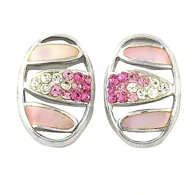 ต่างหูห้อยประดับคริสตัลสีเงินและพลอยสีชมพู ชุบทอง ประดับเพชร มรกต และมุก สำหรับผู้หญิง ใส่ได้ทุกวันและในโอกาสพิเศษ