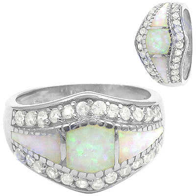 แหวนเงินโอปอลทันสมัยสำหรับผู้หญิง ประดับมุกและเพชรคิวบิกเซอร์โคเนีย ชุบทอง 18K ดีไซน์เก๋ ตัวเรือนทำจากทองแดง