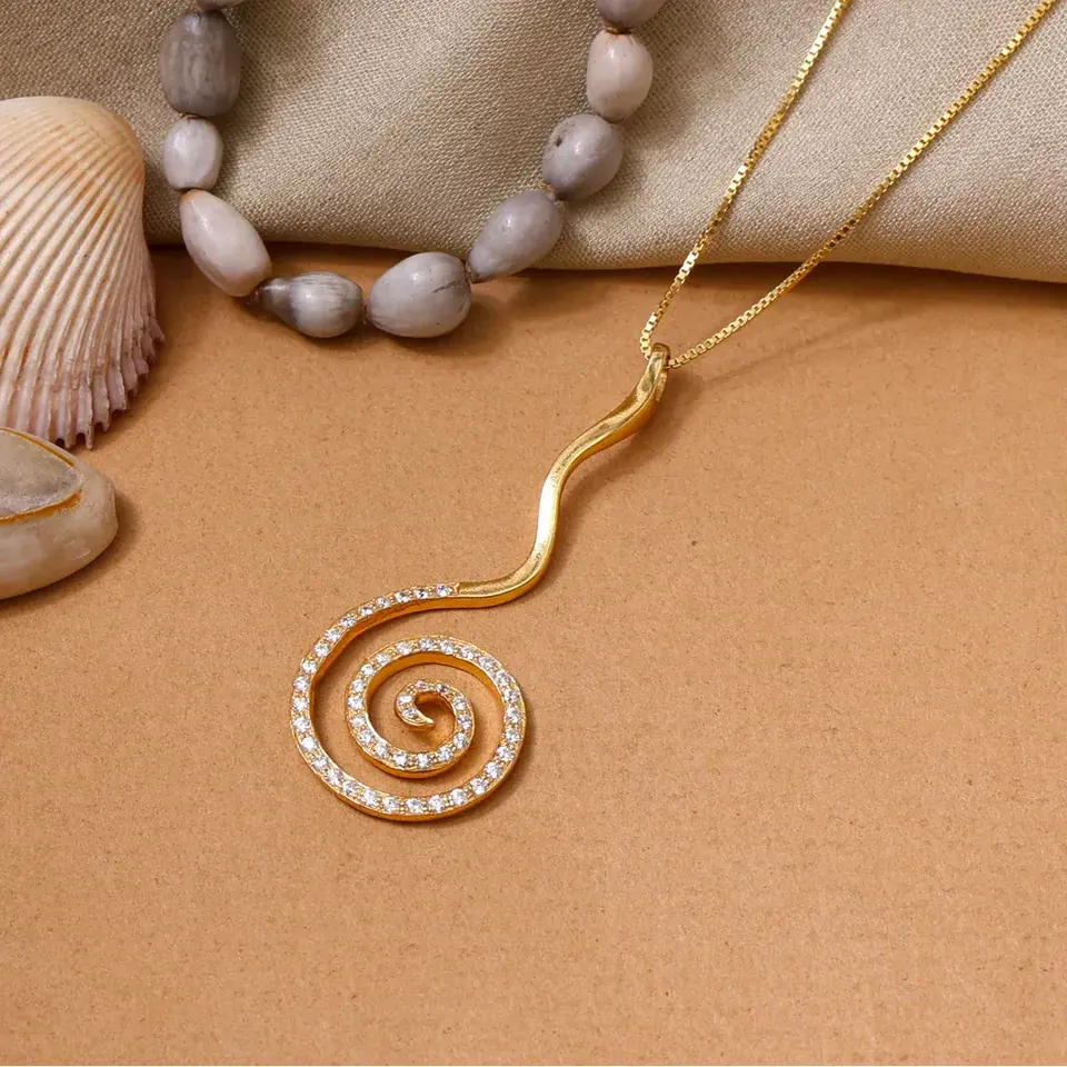 สร้อยคอจี้เพชรทรงเกลียวชุบทองสไตล์วินเทจสำหรับผู้หญิง พร้อมสายไทเทเนียมและไข่มุก เหมาะสำหรับเป็นของขวัญ