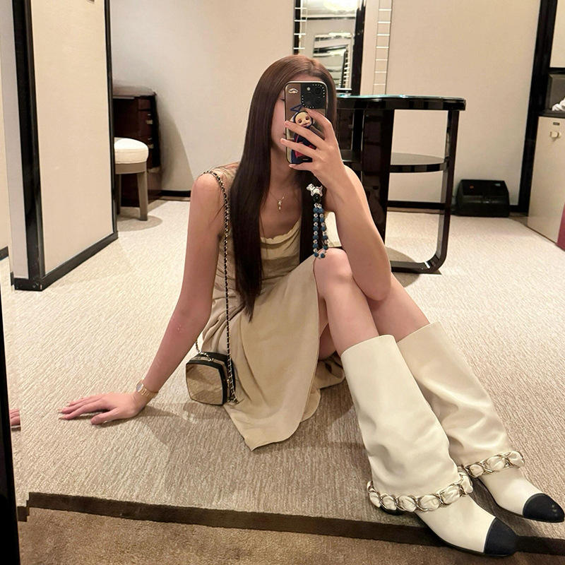 รองเท้าบูทผู้หญิงสไตล์ทวีดแบบพับได้ ปี 2026 ดีไซน์ใหม่สไตล์ยุโรปอเมริกา ส้นสูง ส้นหนา ใส่ได้หลากหลายแบบ ความยาวถึงเข่า ความยาวระดับกลางน่อง ความยาวระดับข้อเท้า