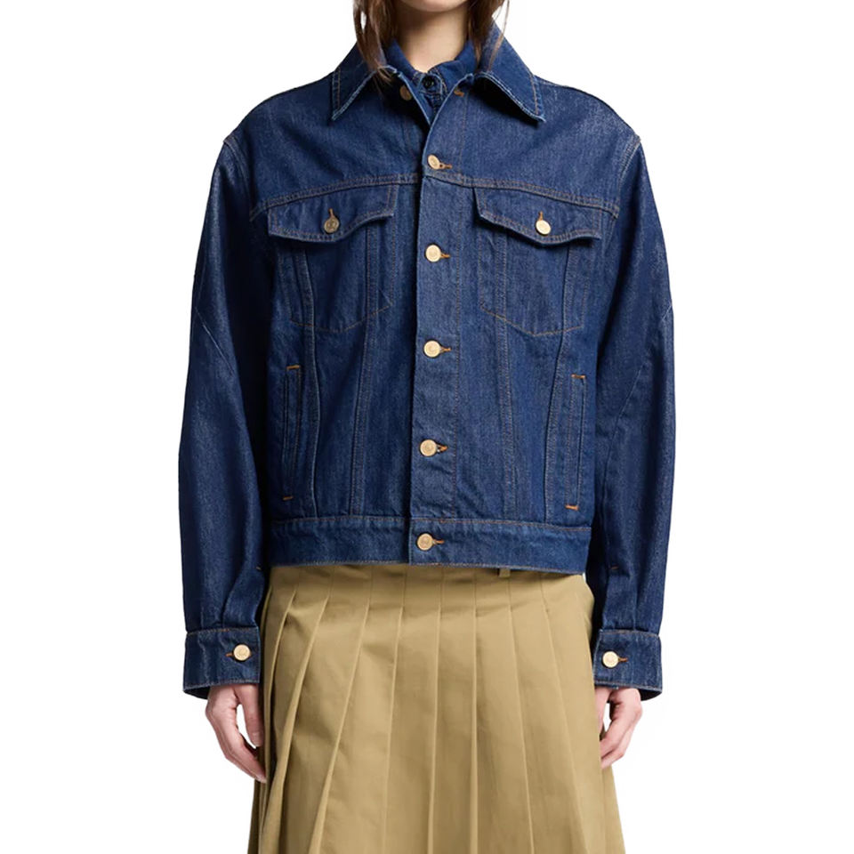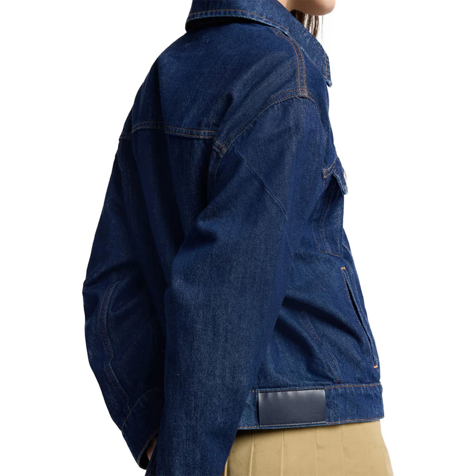 แจ็กเก็ตยีนส์ทรูเกอร์สำหรับผู้หญิงเสื้อแจ็กเก็ตยีนส์ตัดแบบไม่สมมาตรเสื้อแจ็กเก็ตผ้ายีนส์ทันสมัยมีกระเป๋าสำหรับผู้หญิง
