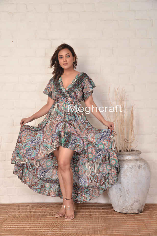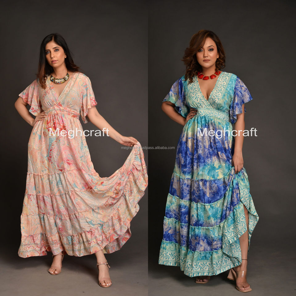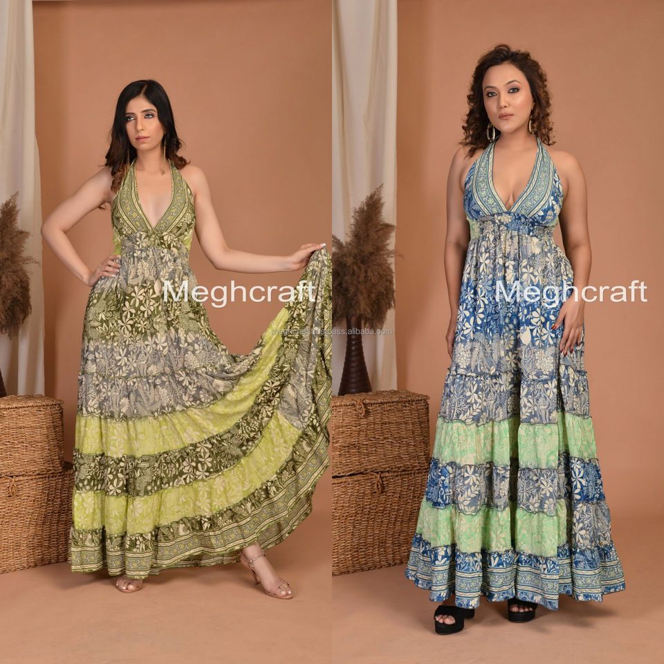 ชุดมินิเดรสผ้าไหมอินโดเวสเทิร์นสองชั้นสำหรับผู้หญิง - ชุดเดรสชายหาดคอ halter สไตล์โบฮีเมียนไซส์พลัส