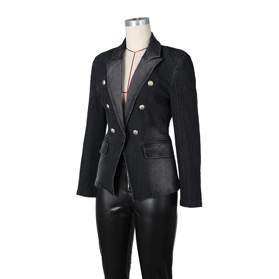 ชุดสูทผ้ายีนส์สำหรับผู้หญิงชุดสูทผ้ายีนส์แขนยาวมีกระดุมและกระเป๋าด้านหน้า