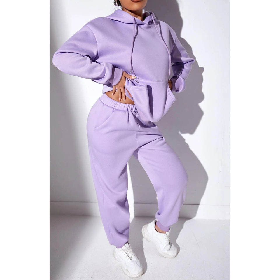 ชุดวอร์มผู้หญิงแบบสองชิ้น ผ้าฝ้ายฟลีซ ชุดกีฬา ชุดออกกำลังกาย ชุดลำลองสำหรับวิ่งจ๊อกกิ้ง
