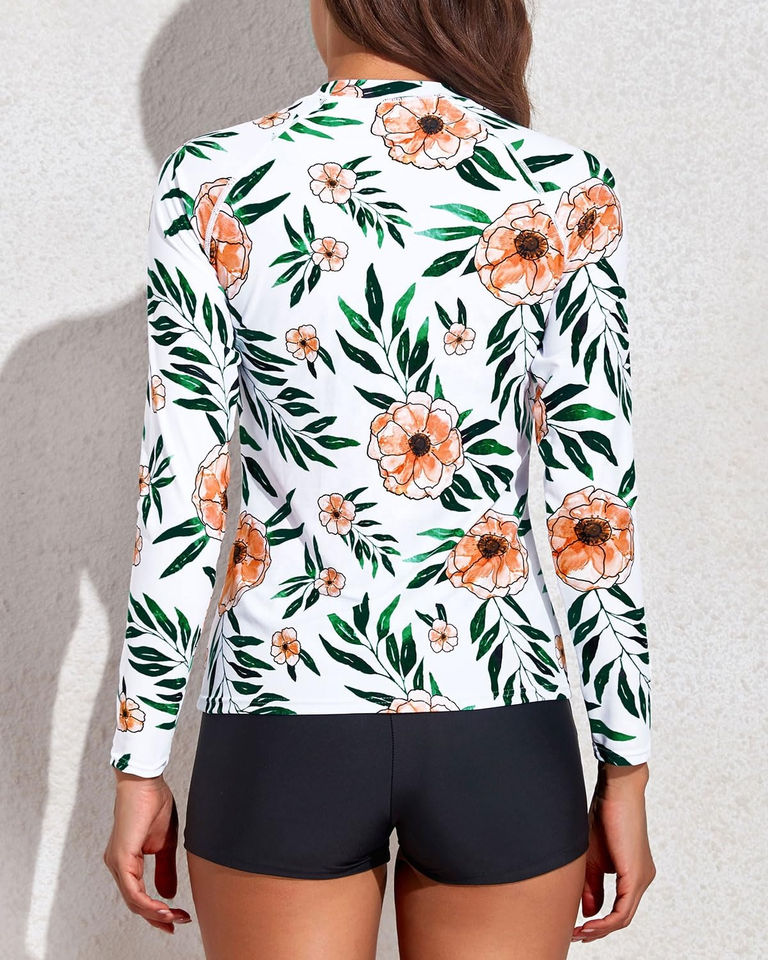 Women's Two Piece Rash Guard Long Sleeve UPF 50+ Swimsuit Swim Shirt With Swim Bottoms With Pockets Cheap Price OEM Custom